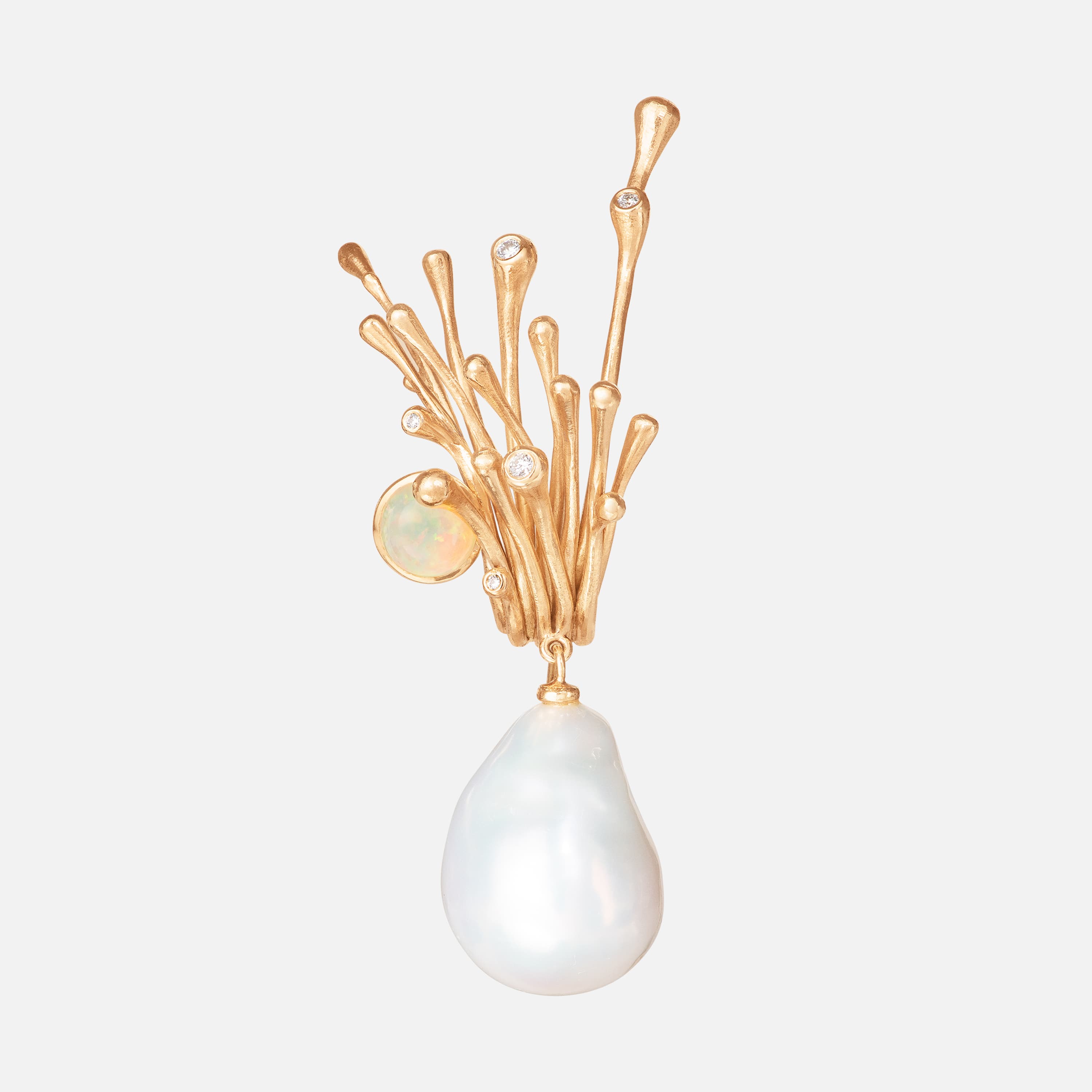 Designed by Charlotte Lynggaard, the BoHo Branch ear clip large is crafted from 18 karat yellow gold with 5 hand-set diamonds 0.05 carat TW. VS. and a 1,2 carat, 6 mm opal. The ear clip has two eyelets for hanging pendants. The hammered and polished gold surfaces are hand-finished by master goldsmiths. Sold as a single piece, available for left or right ear. Part of the BoHo Collection.