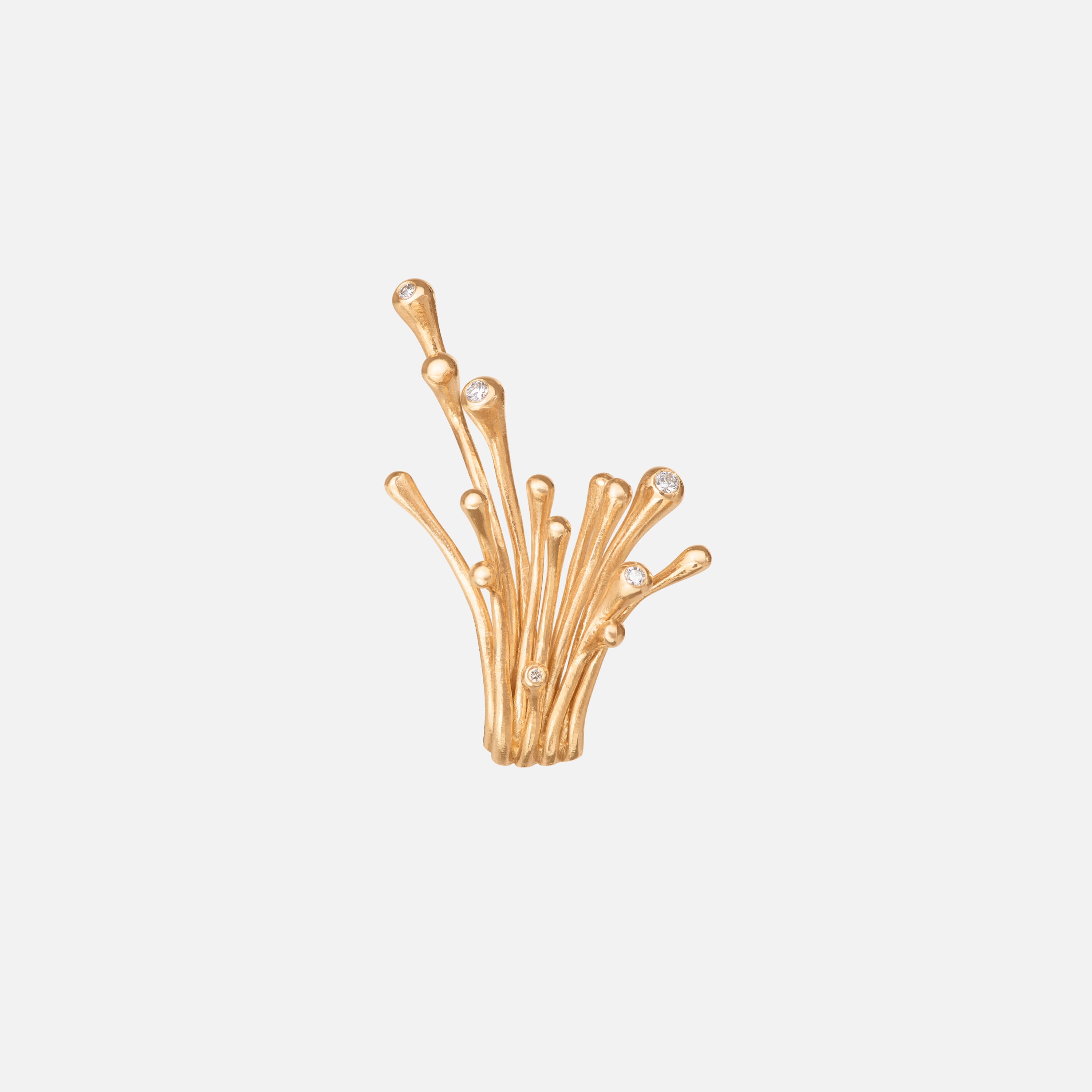 Designed by Charlotte Lynggaard, the BoHo Branch ear clip medium is crafted from 18 karat yellow gold with 5 hand-set diamonds 0.04 carat TW. VS. The ear clip has two eyelets for hanging pendants. The hammered and polished gold surfaces are hand-finished by master goldsmiths. Sold as a single piece, available for left or right ear. Part of the BoHo Collection.