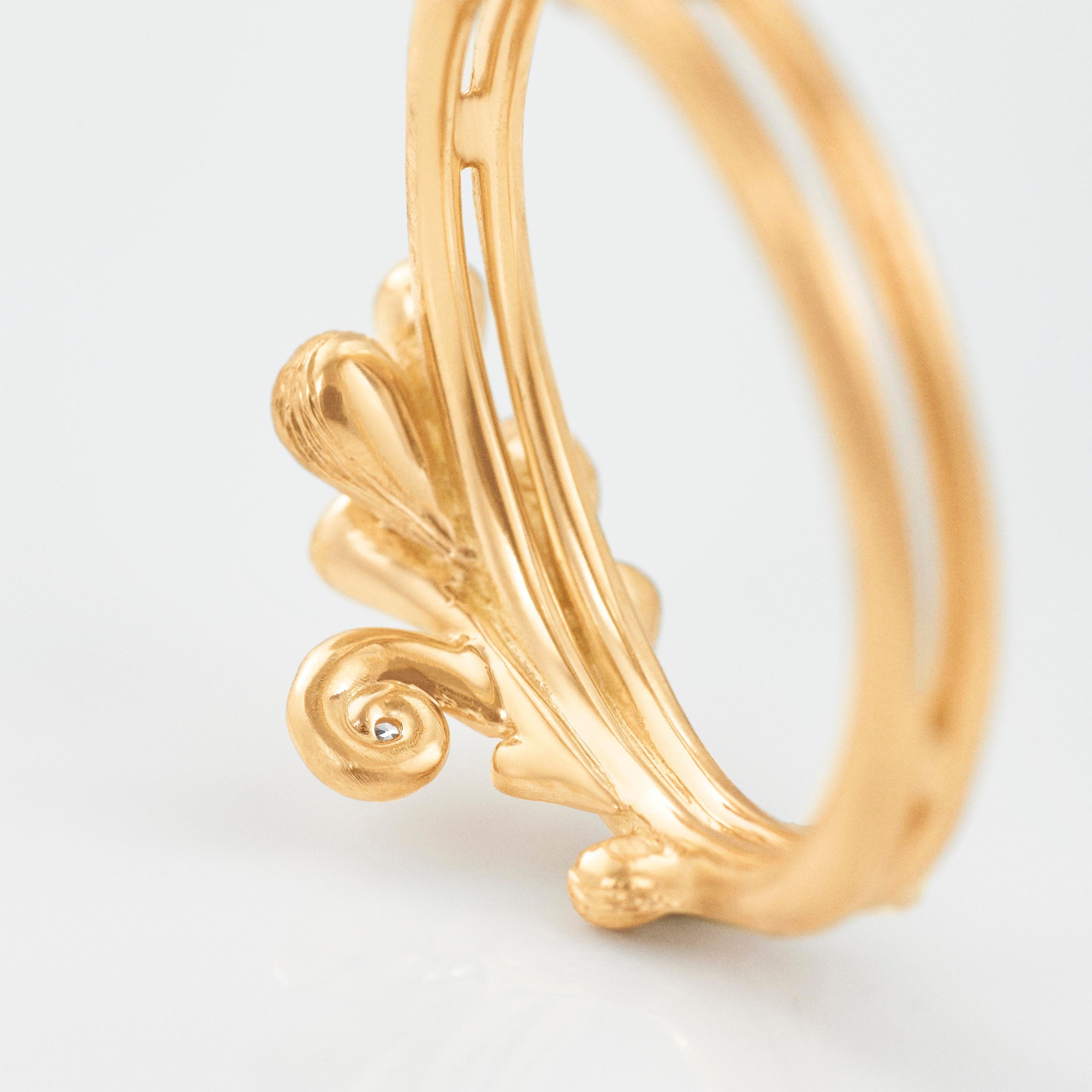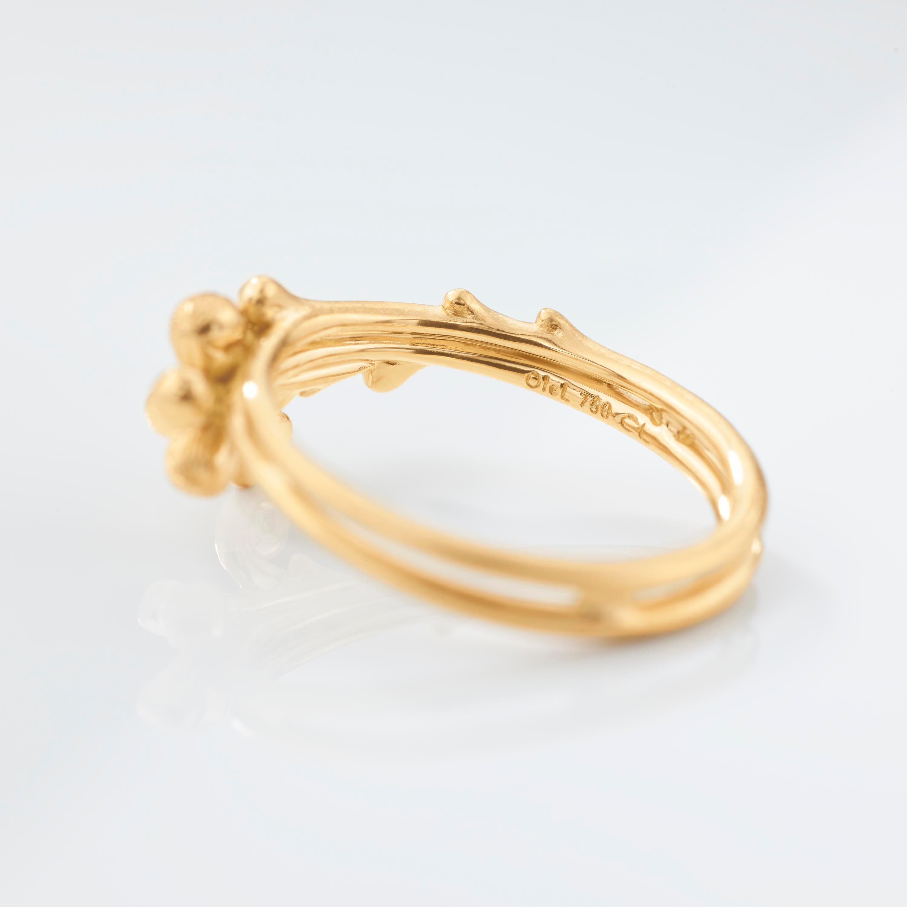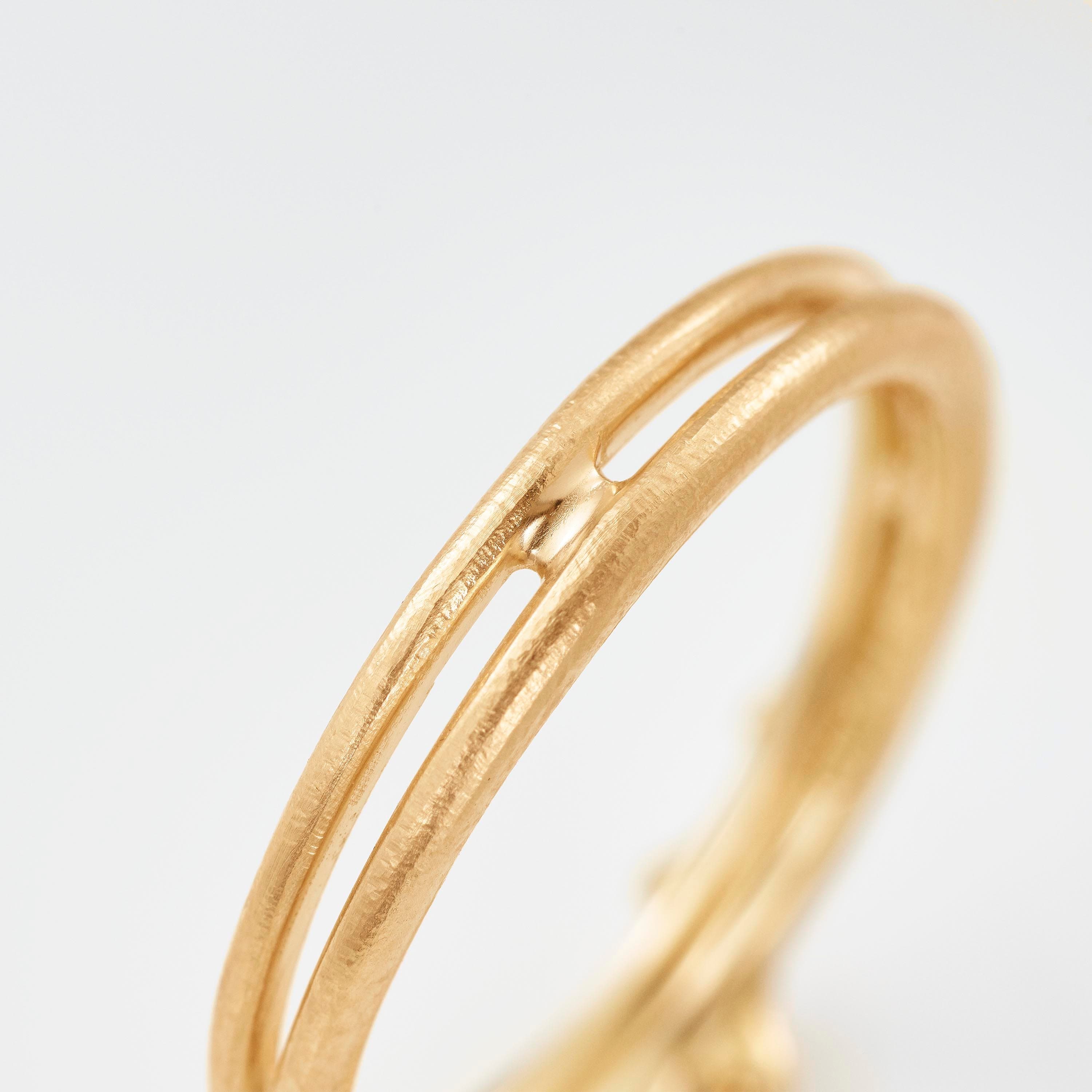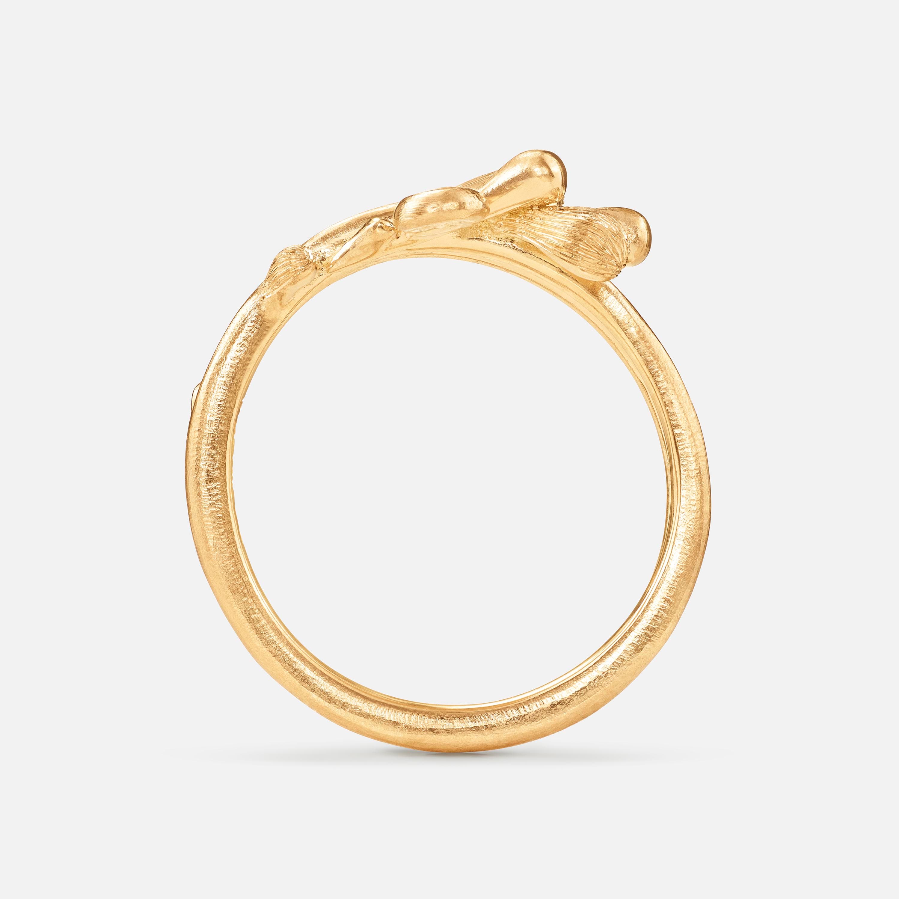Designed by Charlotte Lynggaard, the BoHo ring is crafted from 18 karat yellow gold with a diamond 0.008 carat TW. VS. Handcrafted by master goldsmiths, the visible gold surfaces are hammered and satinised to achieve matt textures, whilst the inside of the ring has a polished finish. Part of the BoHo Collection.