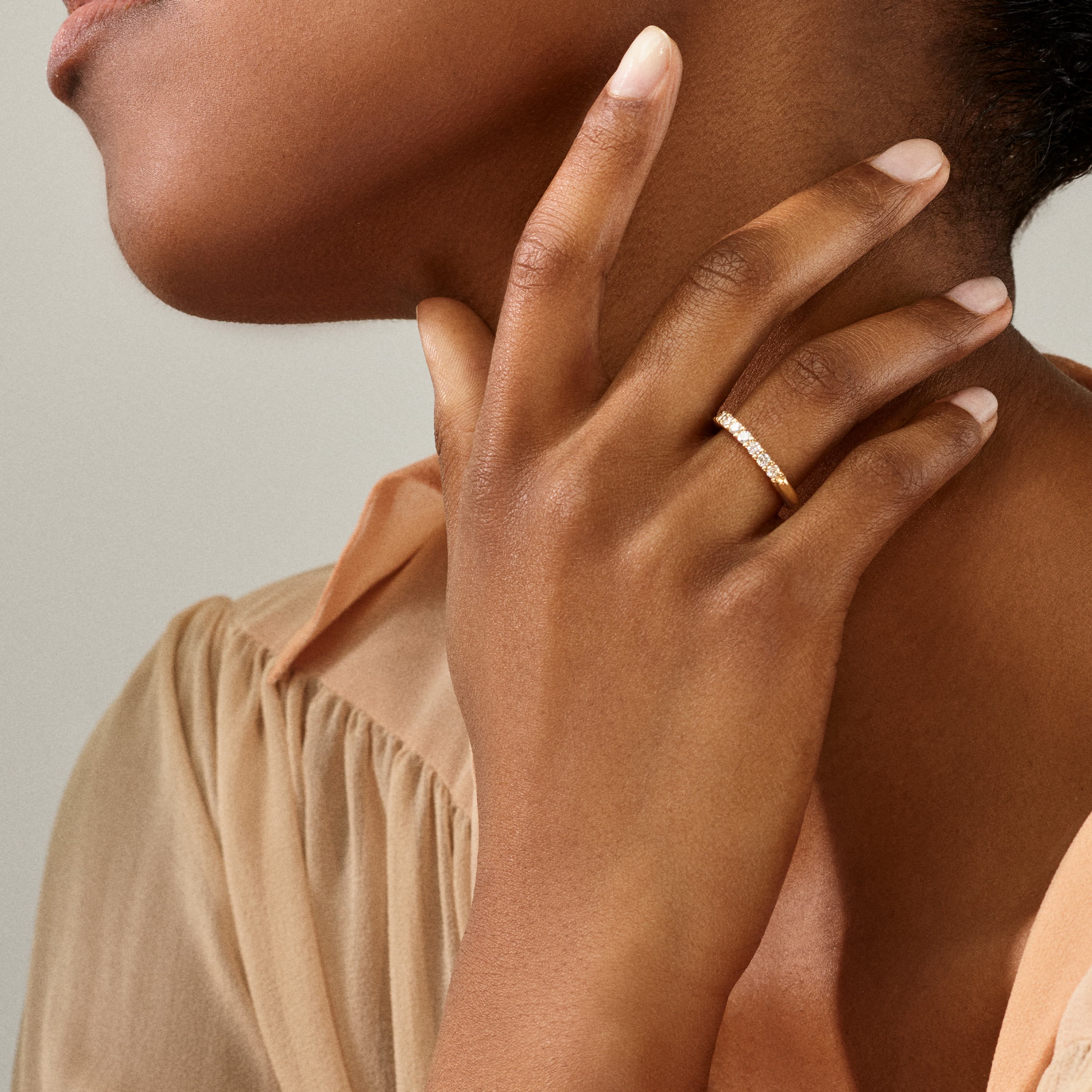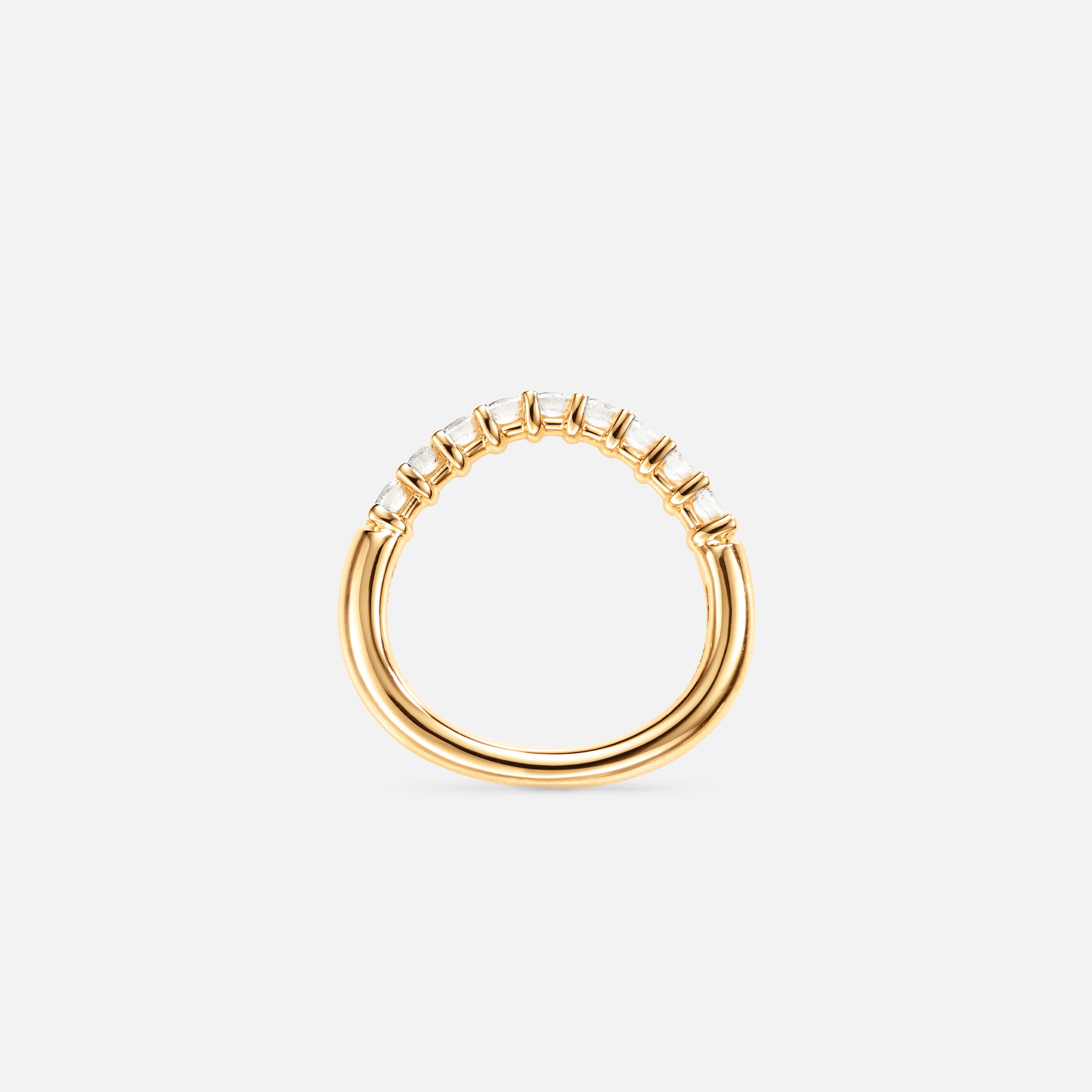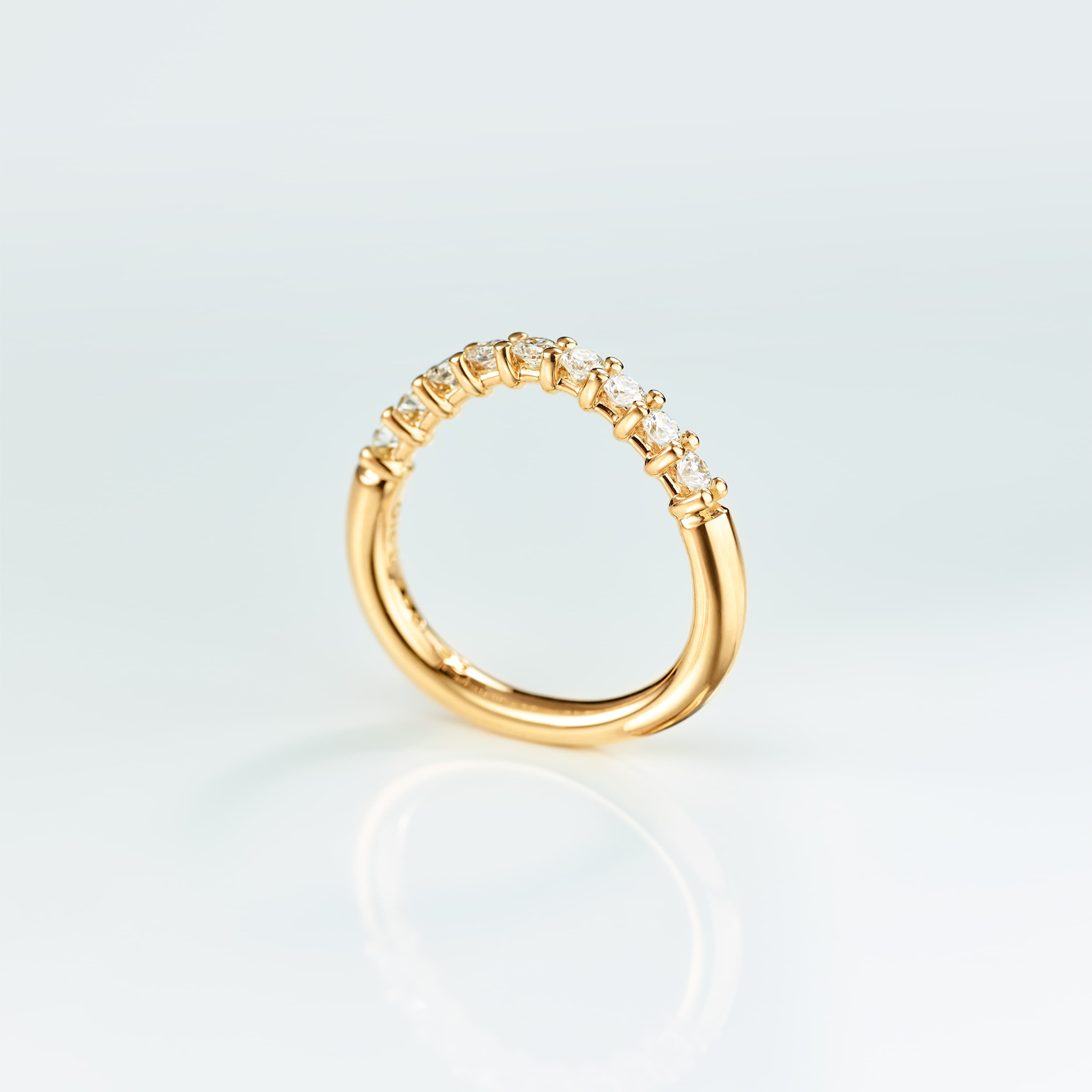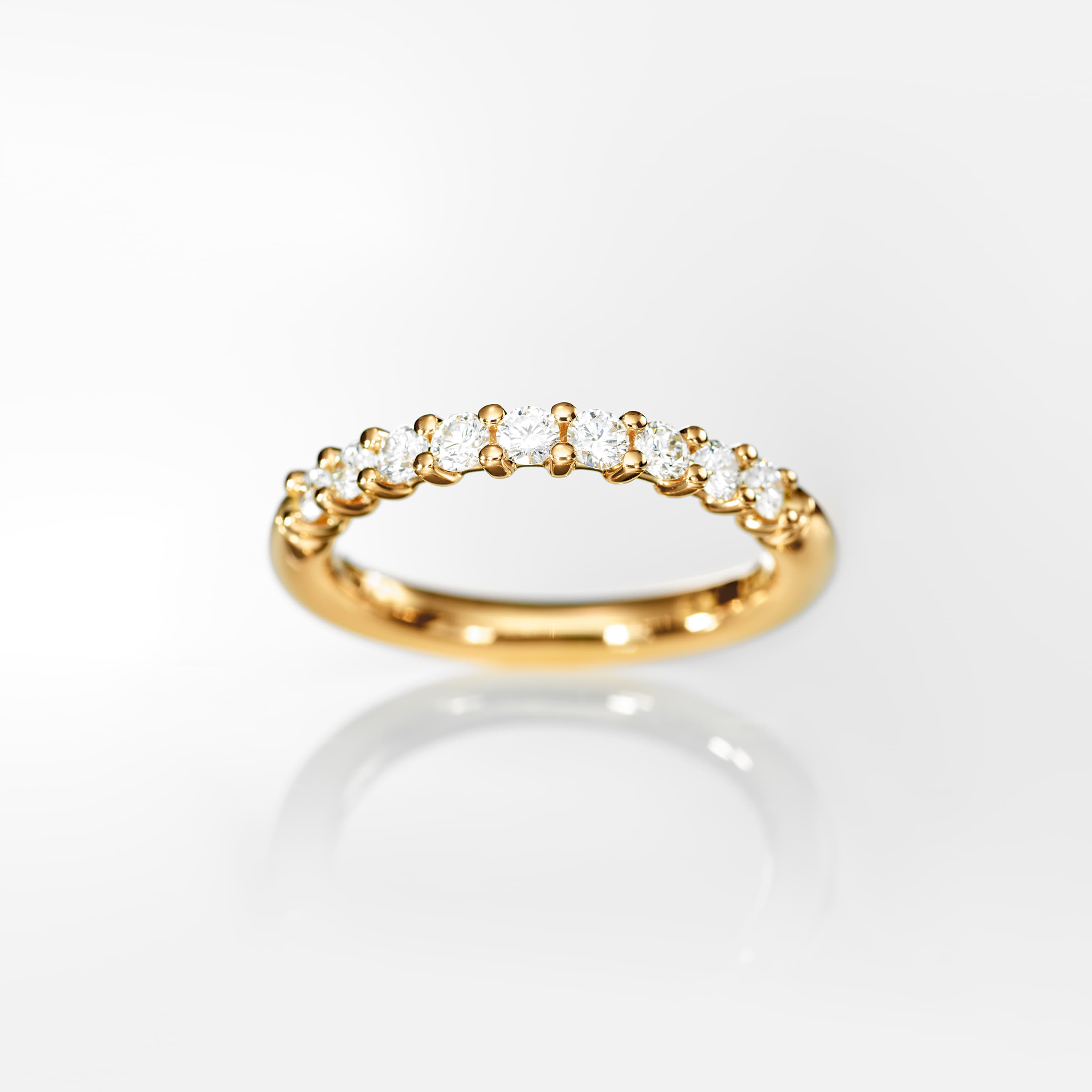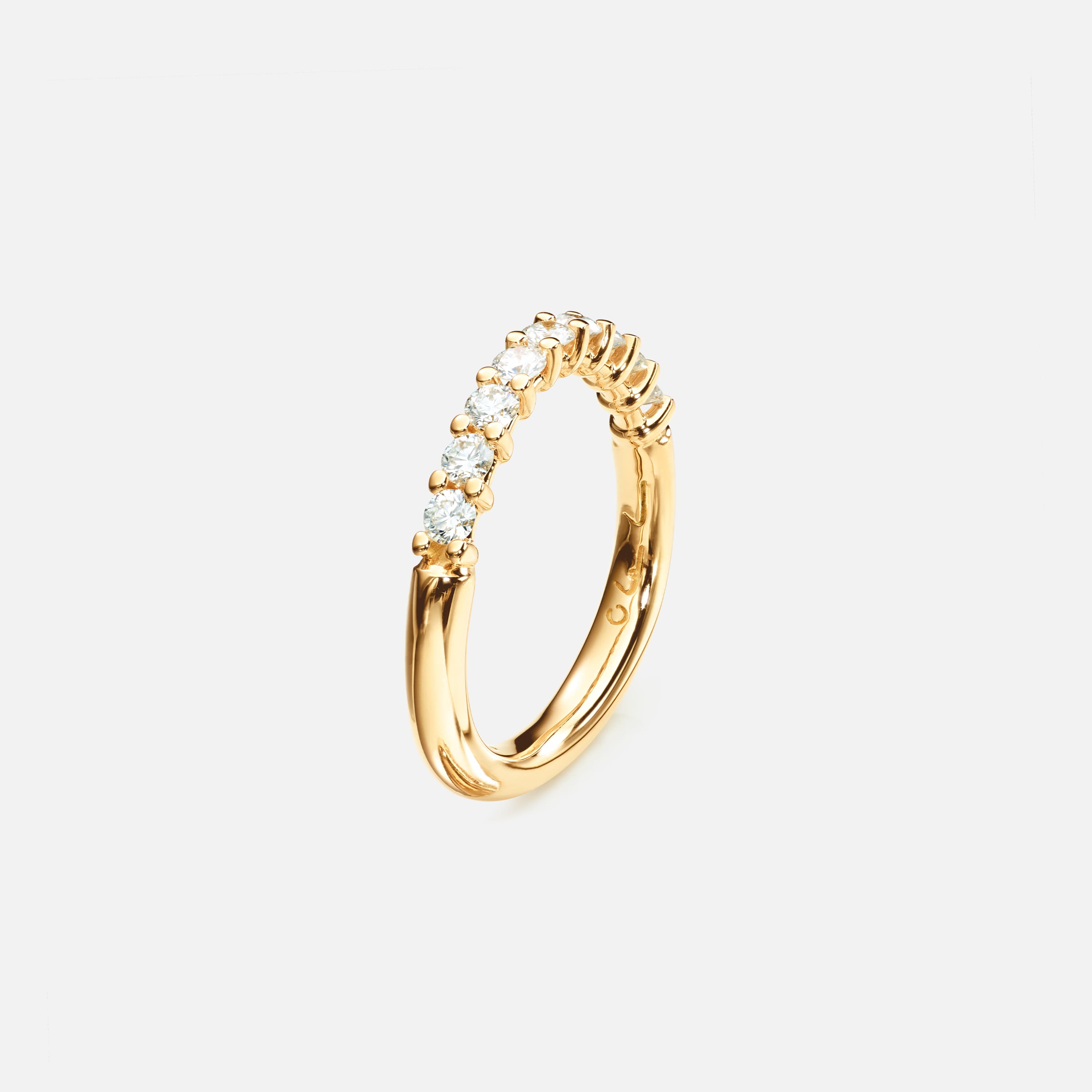 Designed by Ole Lynggaard, the Celebration alliance ring is crafted from 18 karat yellow gold with 9 prong-set diamonds totalling 0,45 carat TW. VS. Handcrafted by master goldsmiths. Part of the Ole Lynggaard Copenhagen Engagement and Wedding Collection.