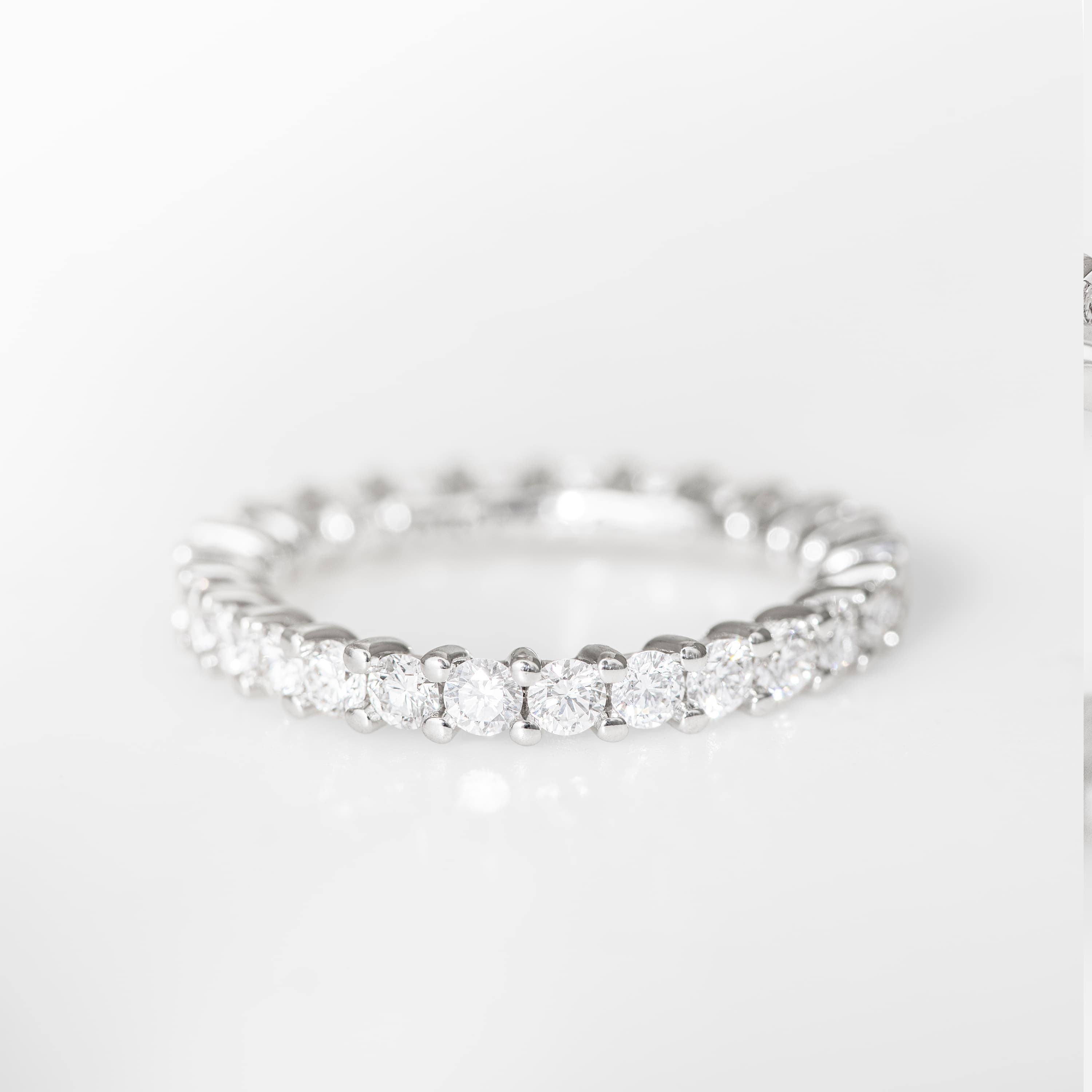 Designed by Ole Lynggaard, the Celebration eternity ring is crafted from 18 karat polished white gold with 24-26 prong-set diamonds, totalling 1,2-1,3 carat TW. VS. depending on ring size. Handcrafted by master goldsmiths. Part of the Ole Lynggaard Copenhagen Engagement and Wedding Collection.