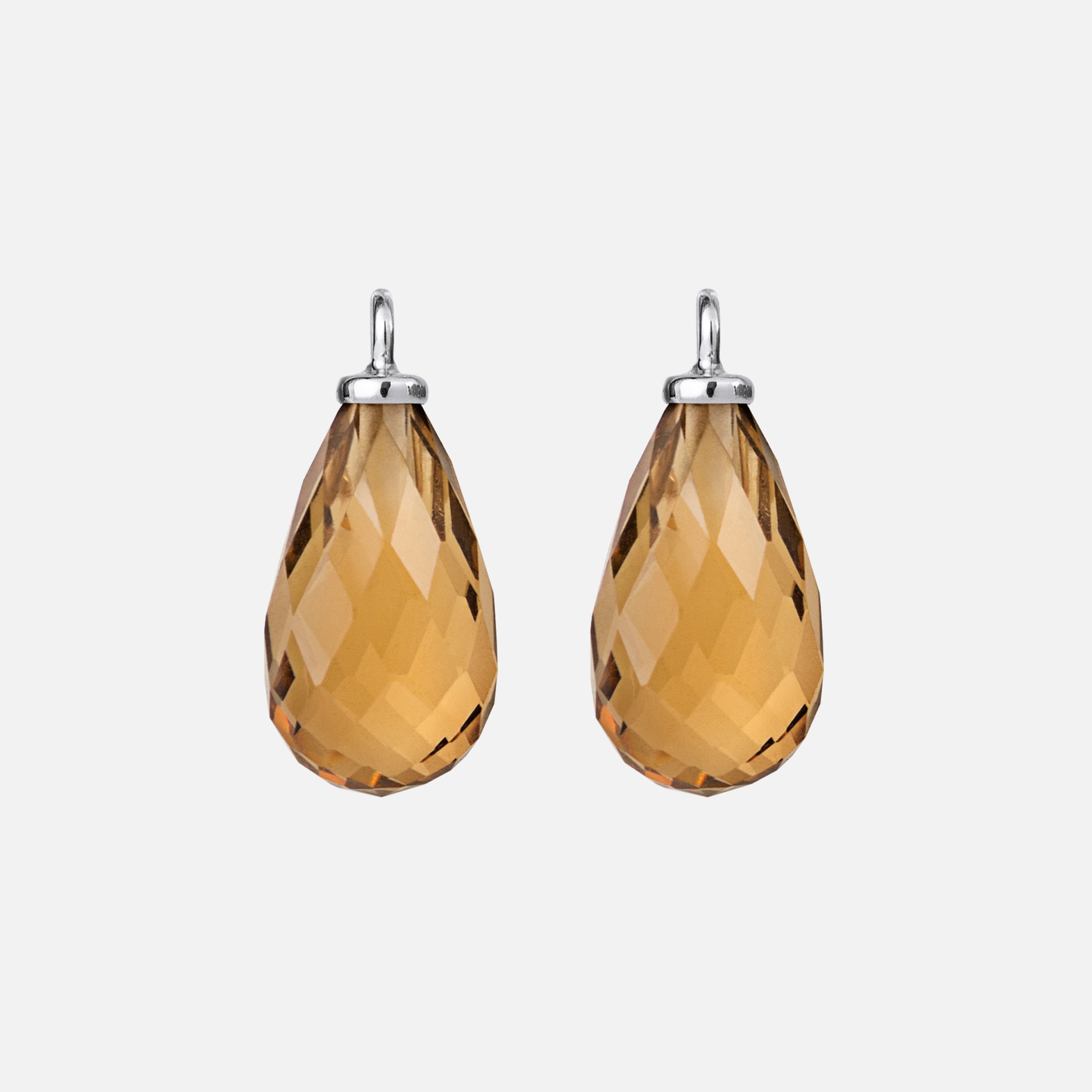 Designed by Charlotte Lynggaard, the earring pendant drops are crafted from 18 karat yellow gold with facetted, 12x7 mm citrine cabochon drops. Handcrafted by master goldsmiths, the pendant drops are made for hanging in earrings and pendants with eyelets. Sold as a pair. Part of the Lotus Collection.