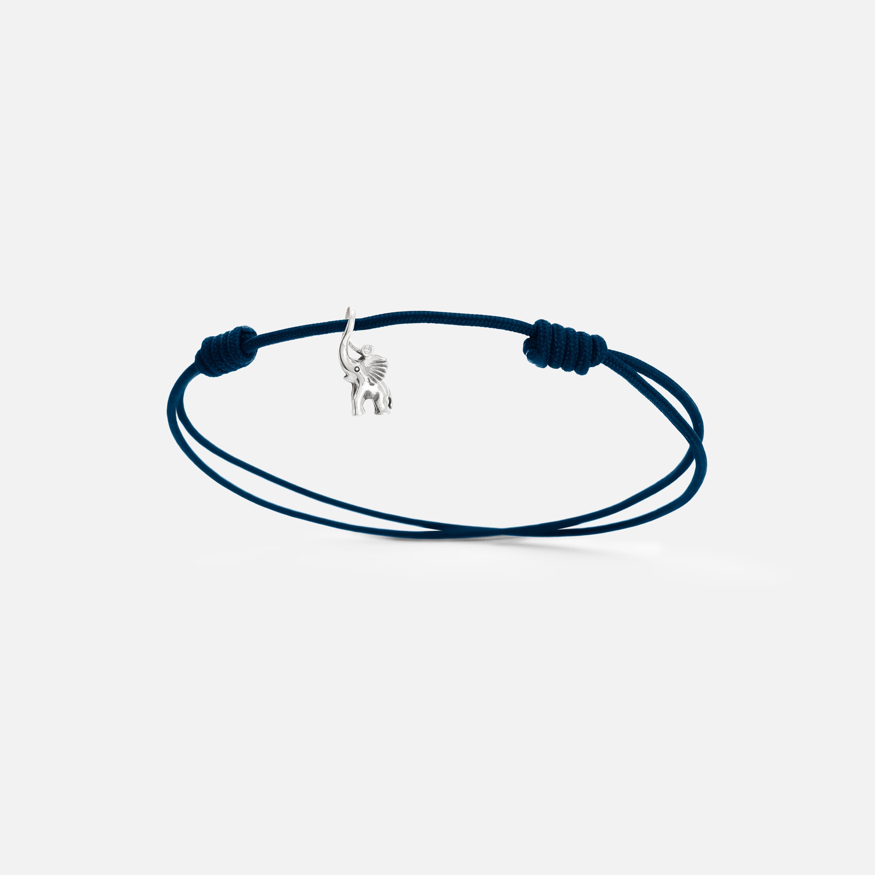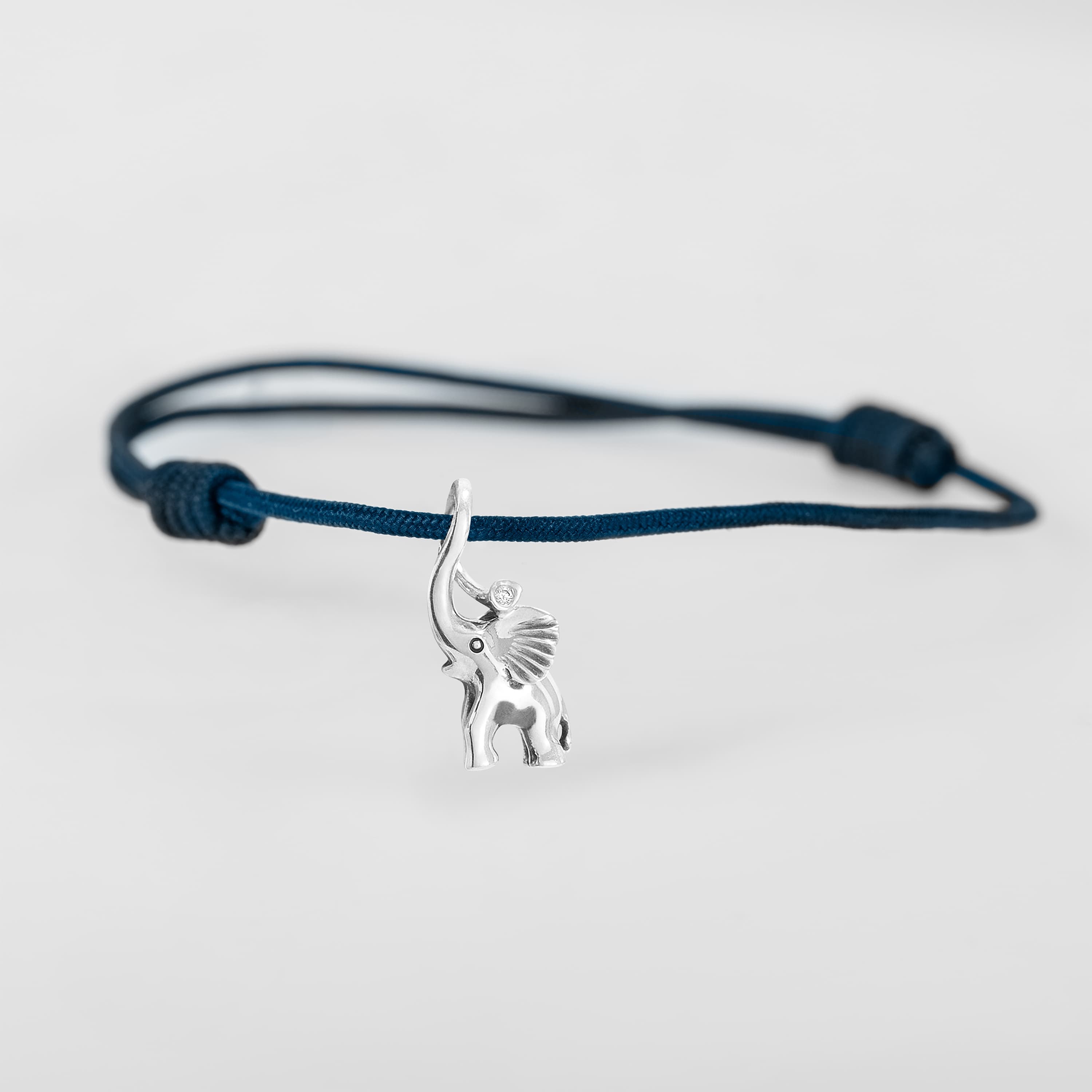 Designed by Ole Lynggaard, the My Little World Elephant bracelet comprises a Sterling silver charm, set with a diamond 0.005 carat TW.VS and adjustable blue cord. The polished surfaces are hand-crafted by master goldsmiths. Part of the Elephant Collection.