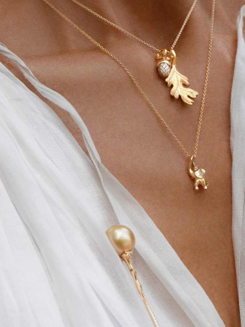 Designed by Ole Lynggaard, the Elephant pendant small is 17 mm high, crafted from 18 karat yellow gold and set with a diamond 0.01 carat TW. VS. Wear it as a pendant on a collier or bracelet. Please notice that the trunk can not be opened on this pendant. The contrasting hammered and polished surfaces are hand-crafted by master goldsmiths. Part of the Elephant Collection.