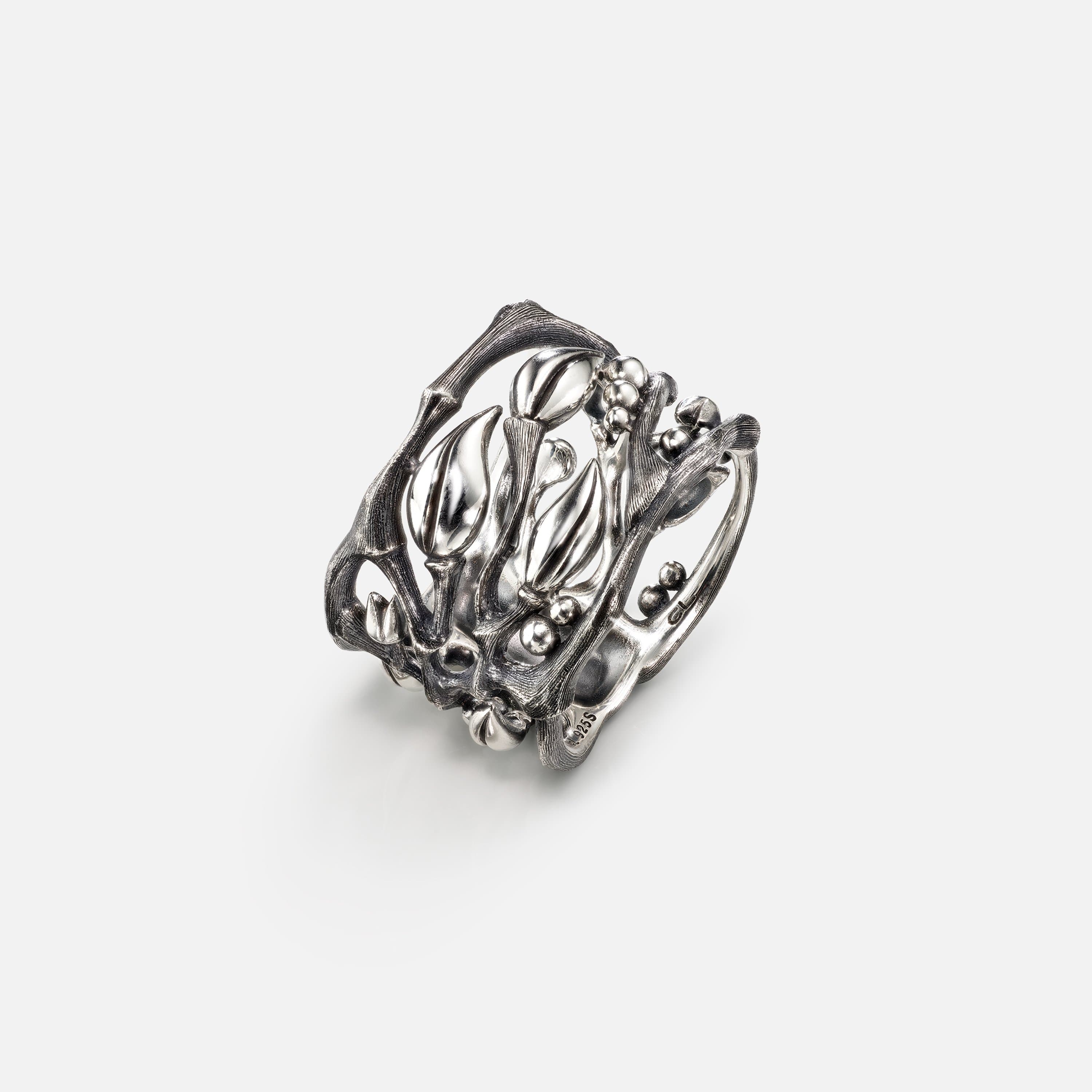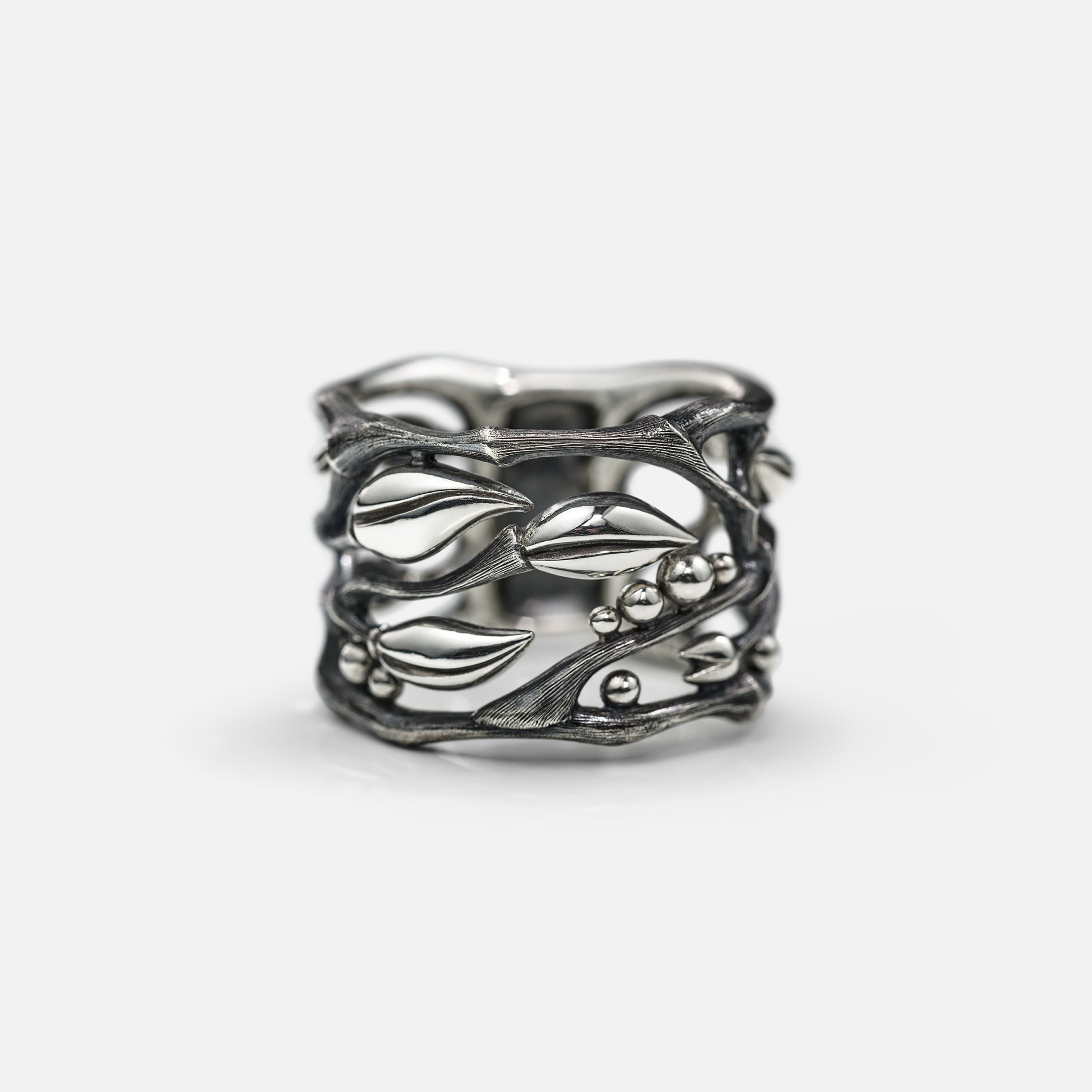 Chenille Mokuba string green/bordeaux with end pieces in Sterling silver