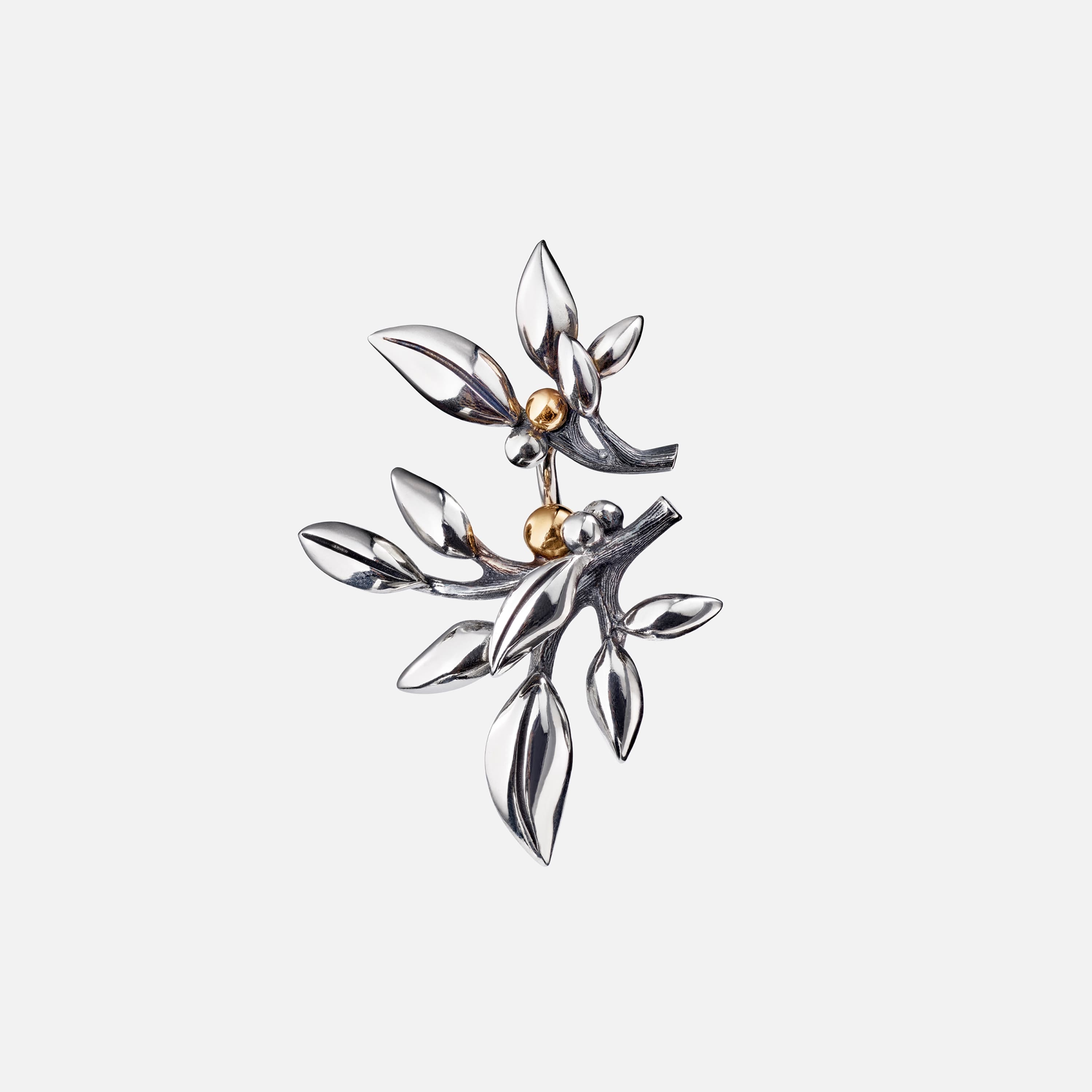 Designed by Charlotte Lynggaard, the Forest stud earring pendant is crafted from Sterling silver and 18 karat yellow gold. The silver is partially oxidized, and the precious metal surfaces are hand-finished using different techniques to create contrast. Sold as a single piece. Part of the Forest Collection.