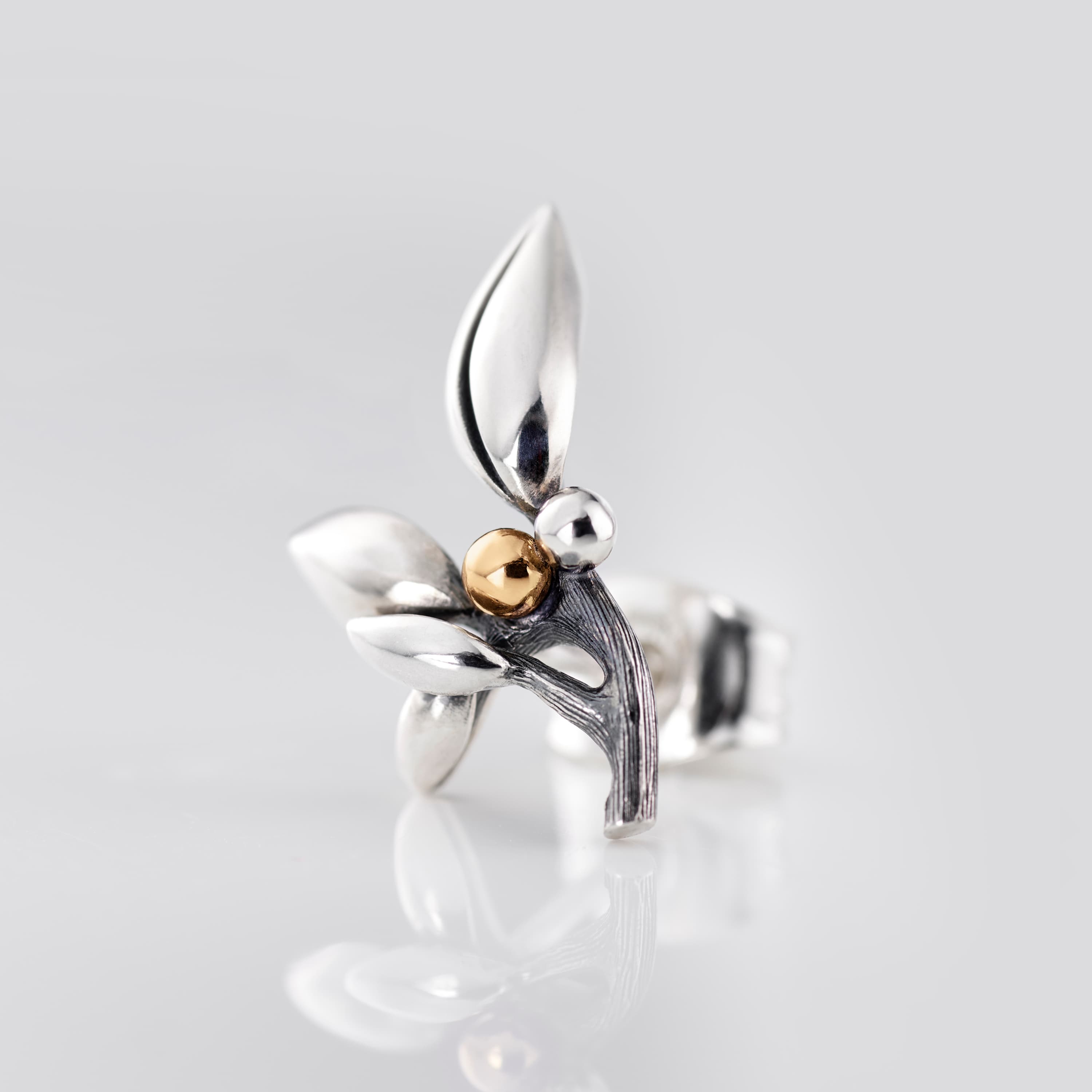 Designed by Charlotte Lynggaard, the Forest stud earrings are crafted from Sterling silver and 18 karat yellow gold. The silver is partially oxidized, and the precious metal surfaces are hand-finished using different techniques to create contrast. Sold as a pair. Part of the Forest Collection.