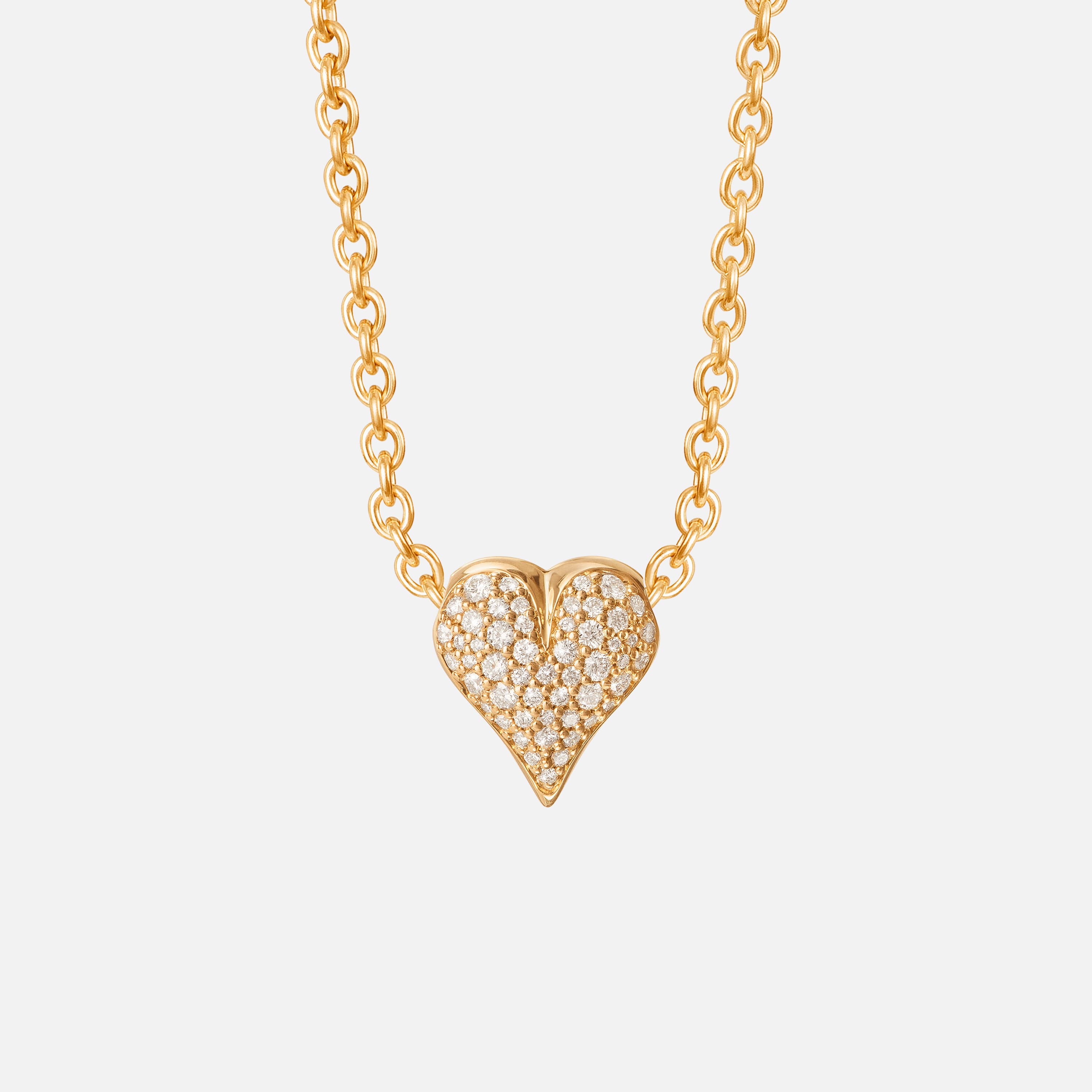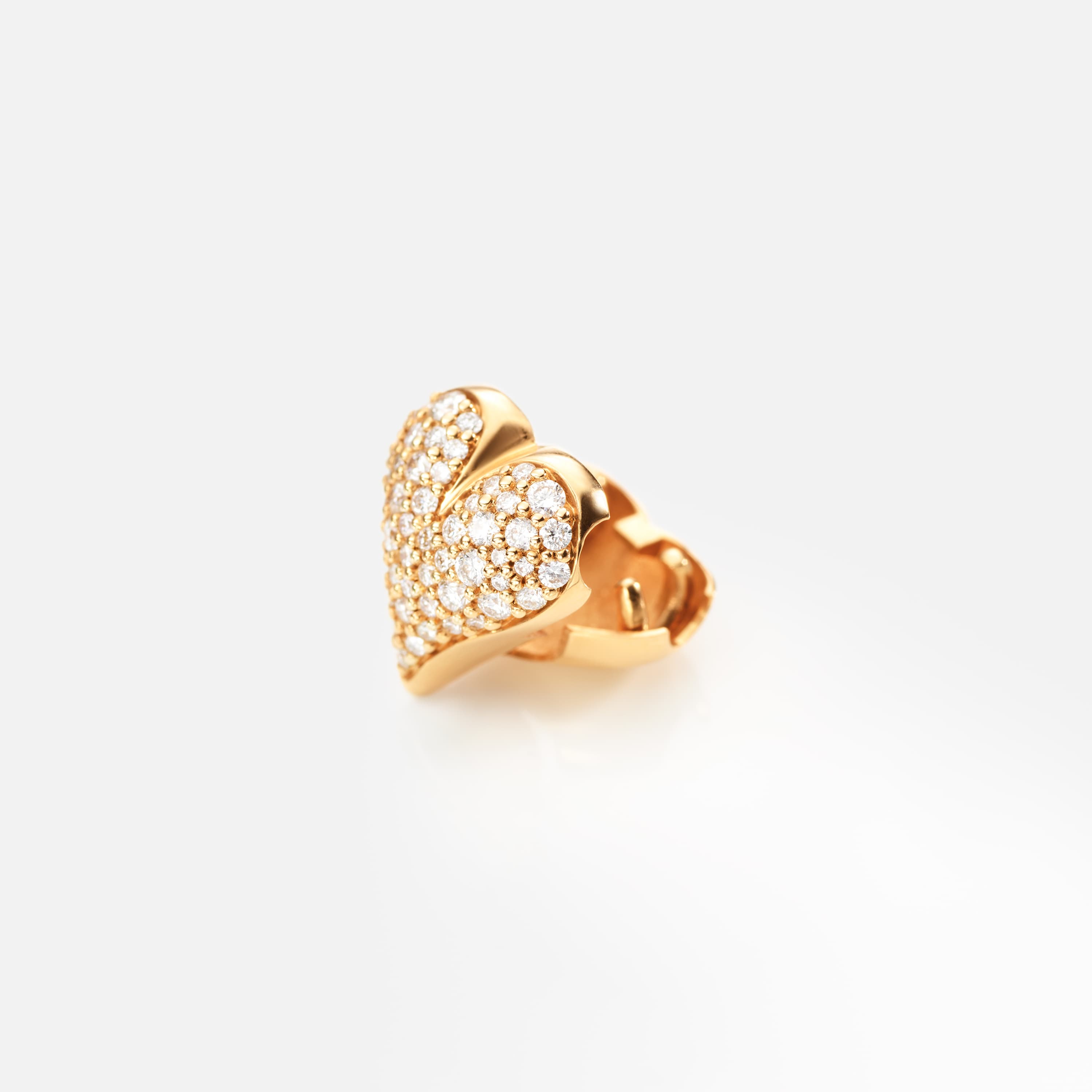 Designed by Charlotte Lynggaard, the Hearts clasp is crafted from 18 karat yellow gold and 52 pavé-set diamonds totalling 0,30 carat TW.VS. The gold surfaces are hand-polished by master goldsmiths. Can be used as a lock on Ole Lynggaard Copenhagen bead colliers or as a pendant on thin chain colliers. Part of the Hearts Collection.