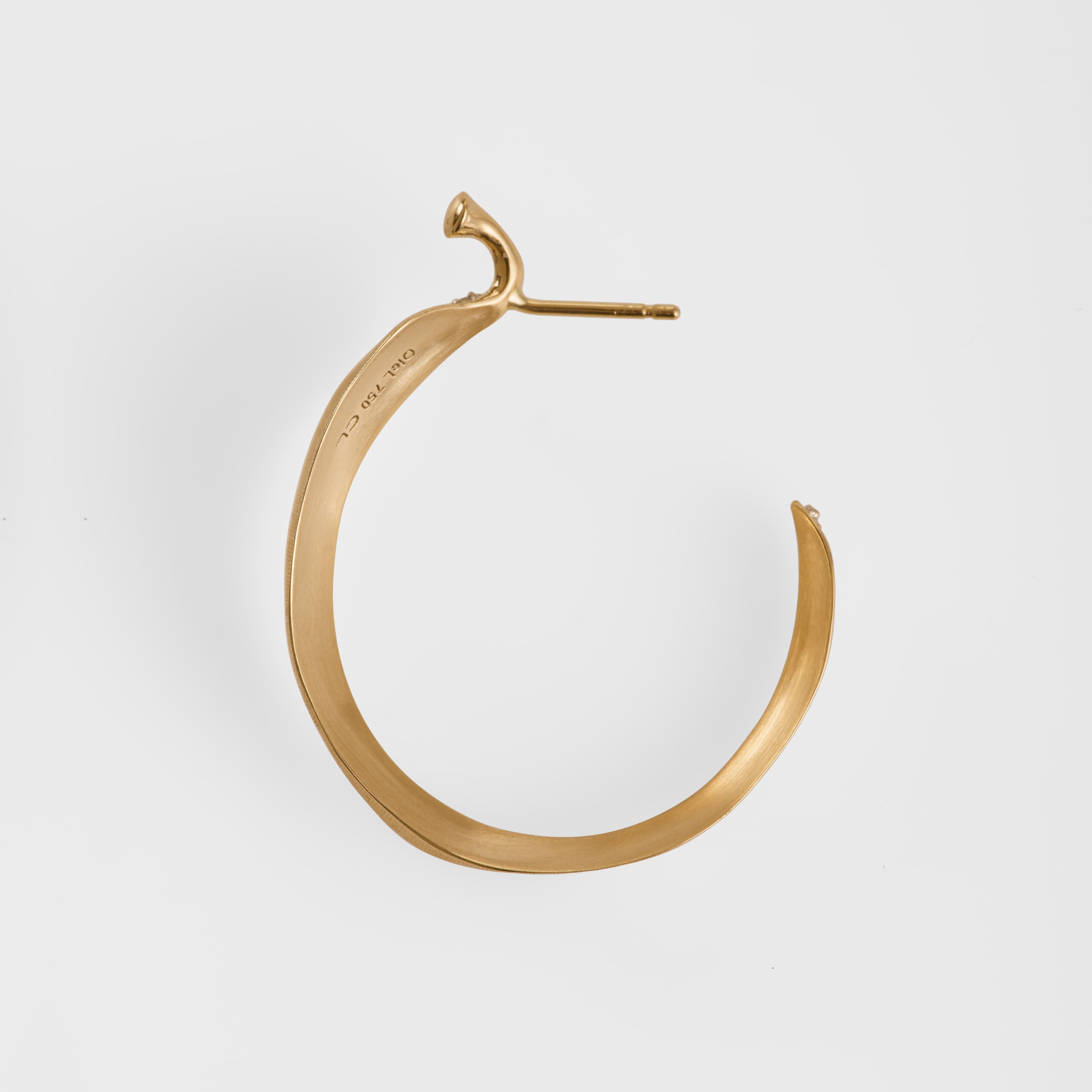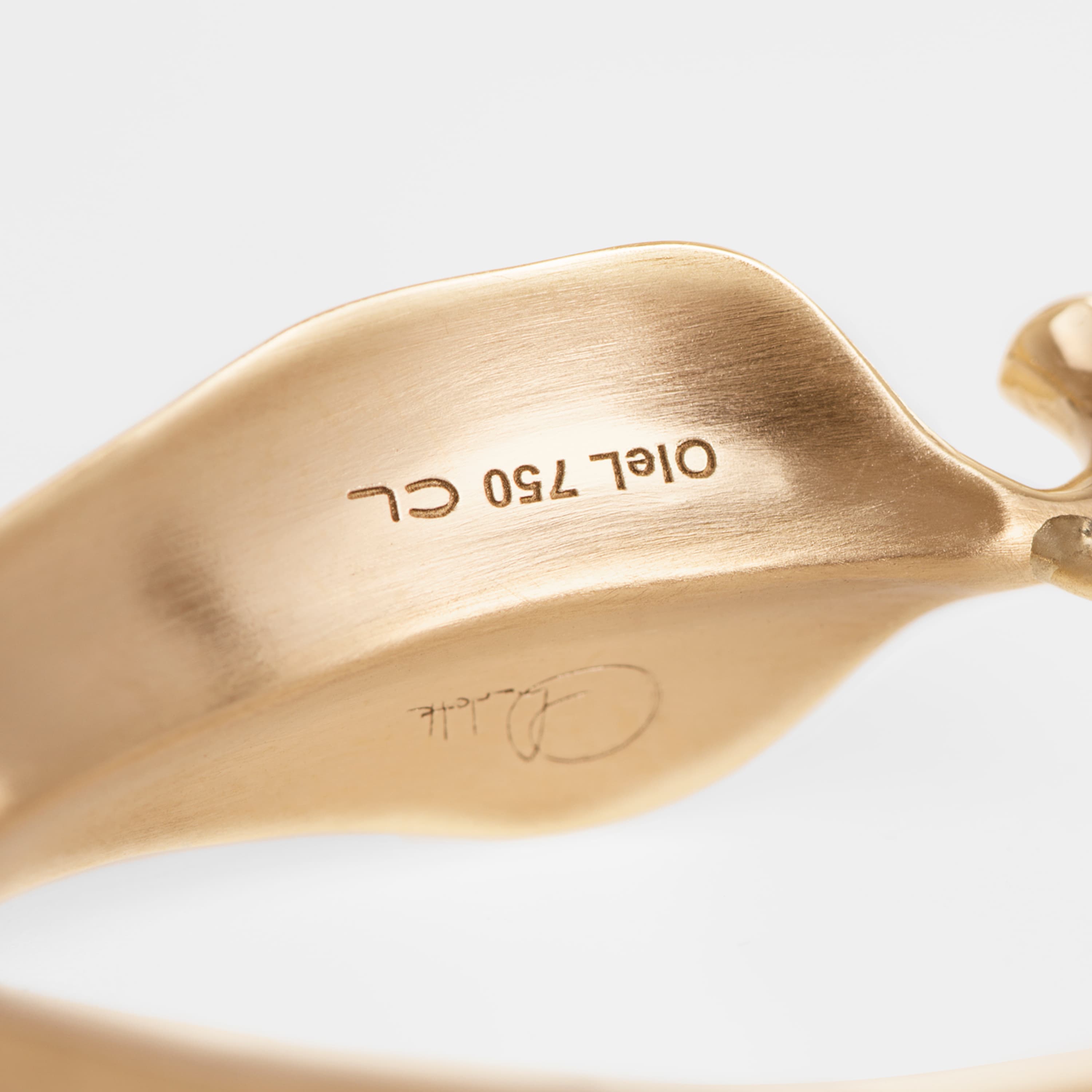 Designed by Charlotte Lynggaard, the Leaves Creol earrings large are crafted from 18 karat yellow gold with 130 pavé-set diamonds, varying in size to create and follow the shape of each leaf totalling 0,83 carat TW.VS. Using several different techniques and tools, master goldsmiths sculpt and finish the surfaces of the delicate leaves by hand. Sold as a pair. Part of the Leaves Collection.