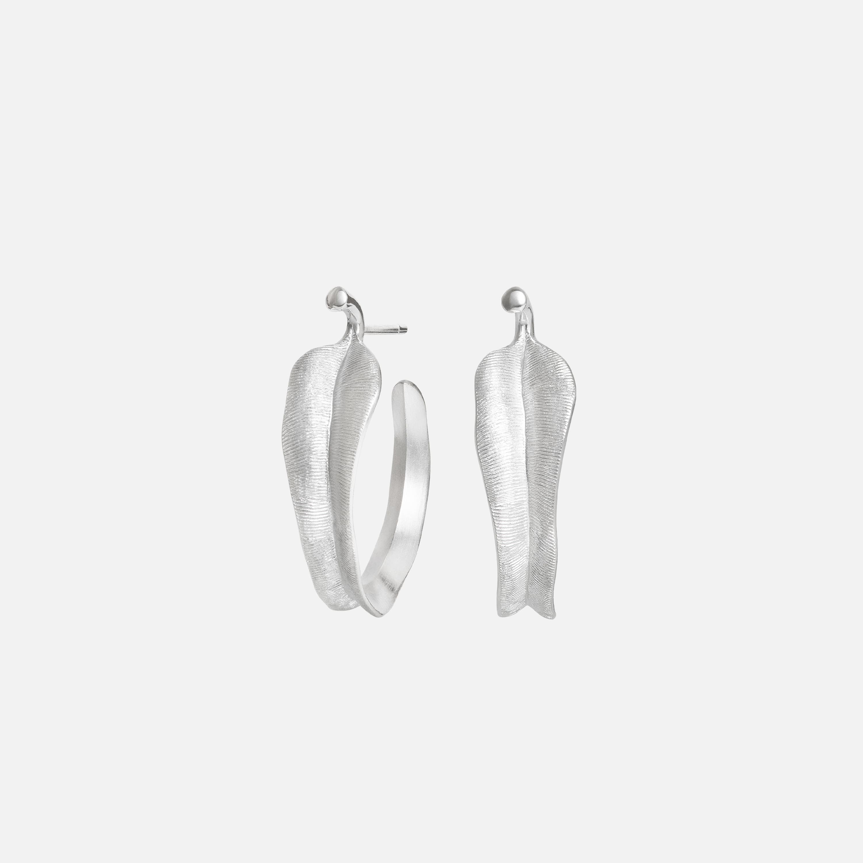 Designed by Charlotte Lynggaard, the Leaves Creol earrings small are crafted from Sterling silver. Using several different techniques and tools, master goldsmiths sculpt and finish the surfaces of the delicate leaves by hand. Sold as a pair. Part of the Leaves Collection.