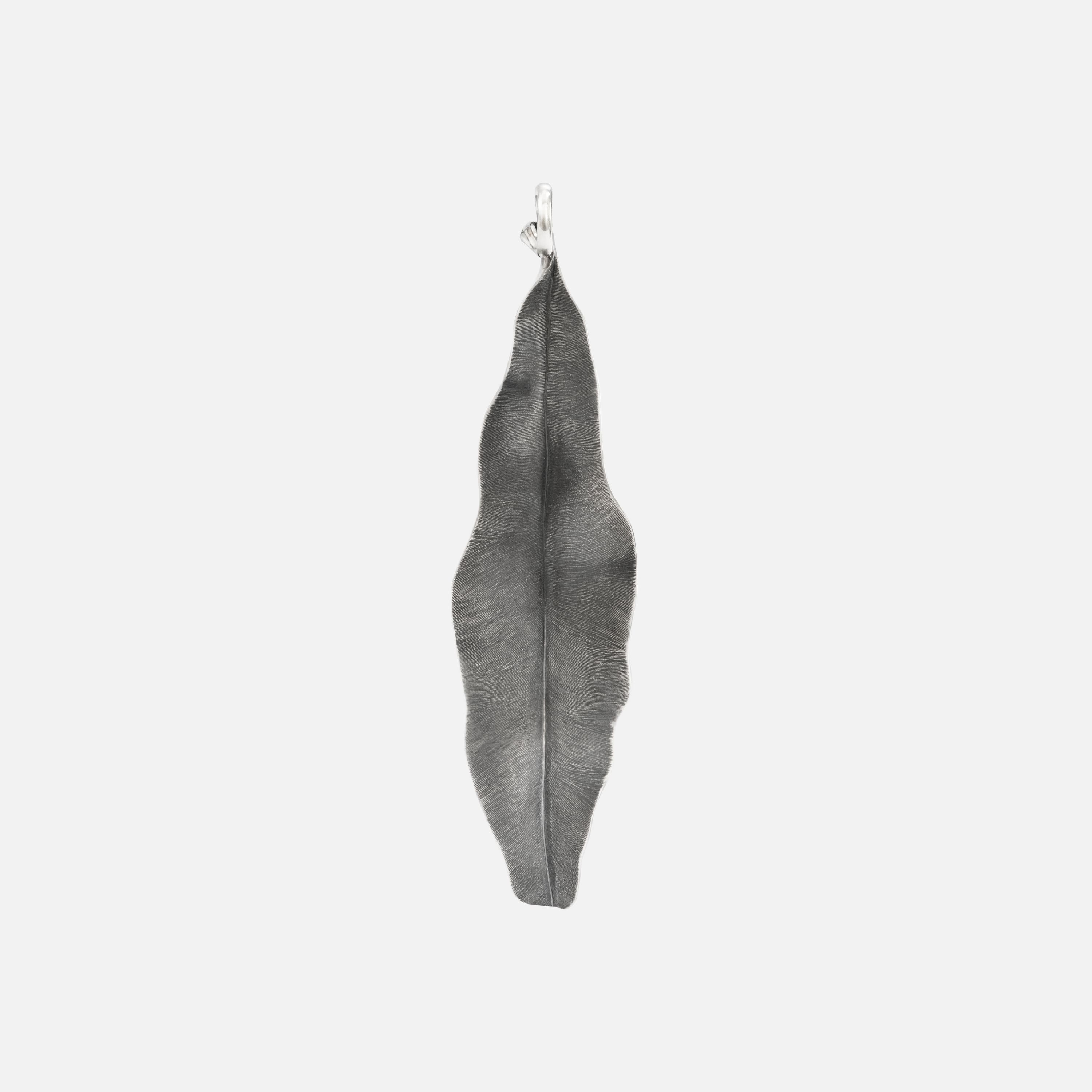 Designed by Charlotte Lynggaard, the Leaves 7 cm pendant is crafted from oxidized Sterling silver. Using several different techniques and tools, master goldsmiths sculpt and finish the surface of the delicate leaf by hand. Part of the Leaves Collection.