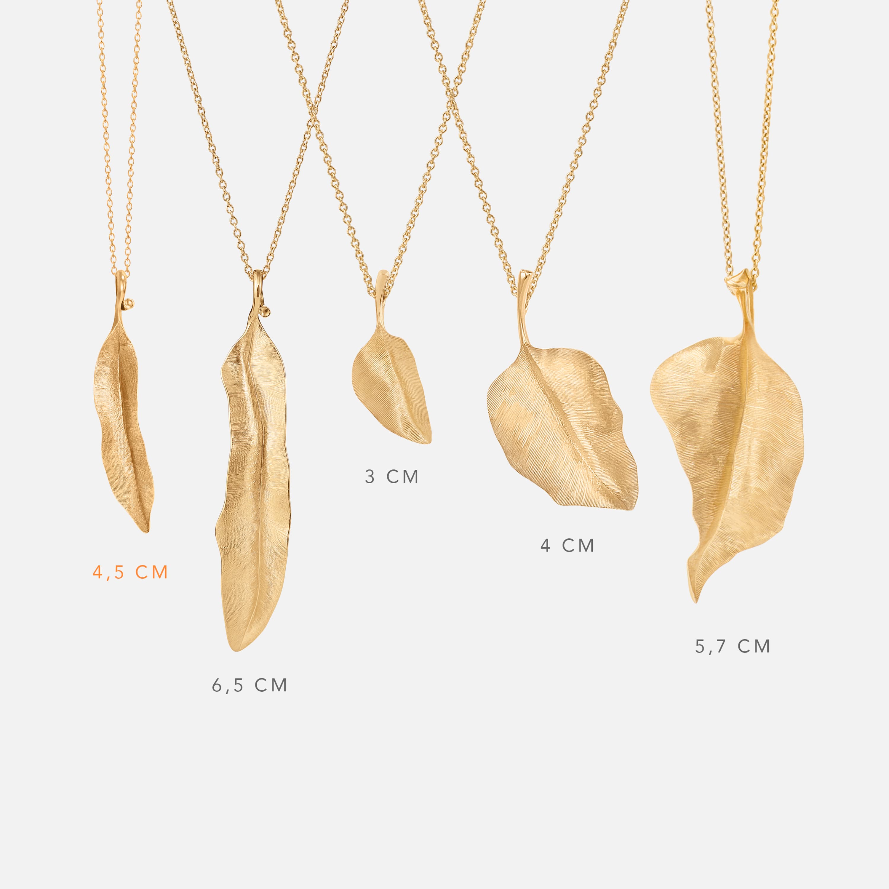 Designed by Charlotte Lynggaard, the Leaves 4.5 cm pendant is crafted from 18 karat yellow gold. Using several different techniques and tools, master goldsmiths sculpt and finish the surface of the delicate leaf by hand. Part of the Leaves Collection.