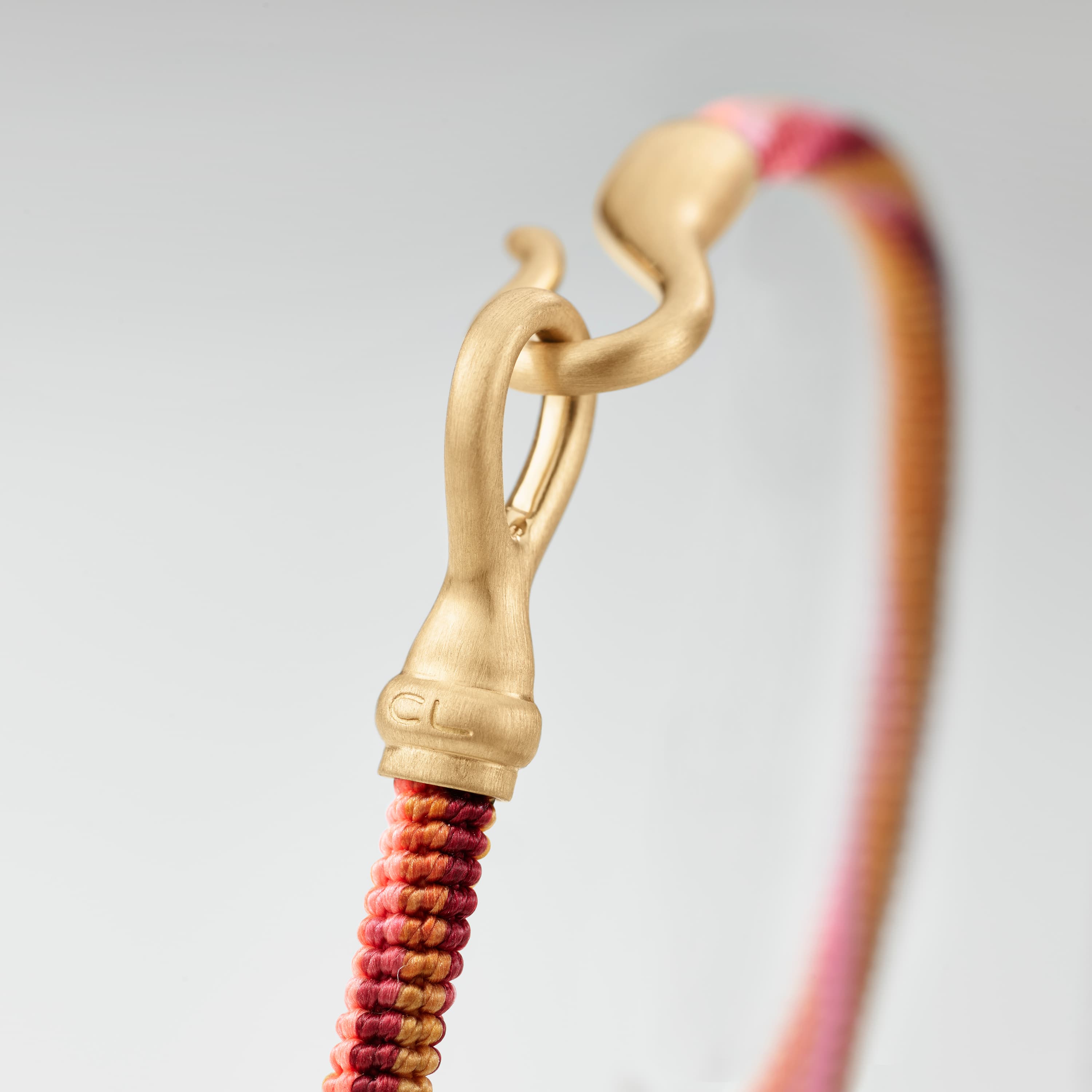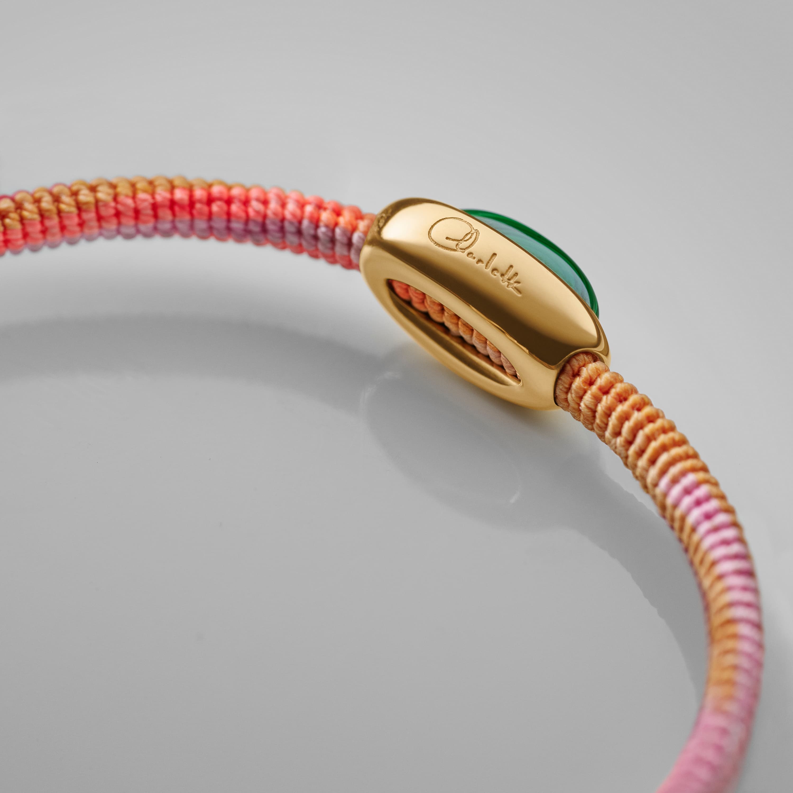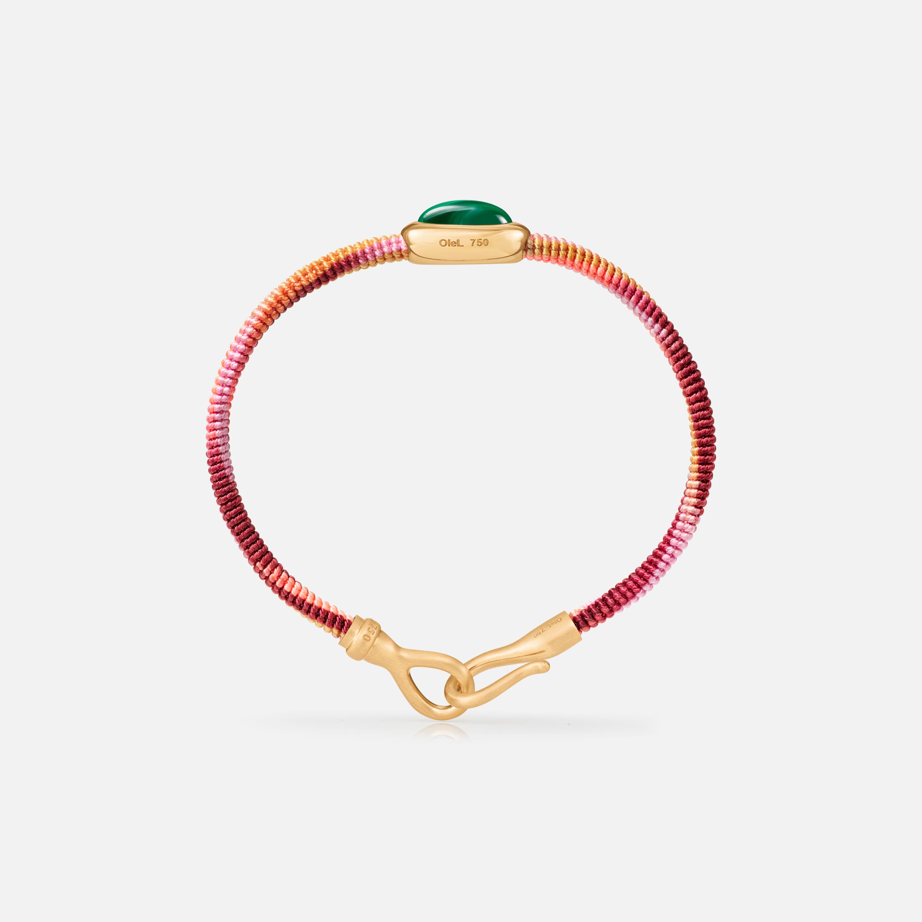 Designed by Charlotte Lynggaard, the Life Berry bracelet with malachite charm is hand-knotted using 7 strings, each one woven from 6 hand-dyed threads. The brand-stamped hook fastening is hand-crafted by master goldsmiths from 18 karat, brushed yellow gold. The 12x6x4 mm malachite is set in 18 karat, polished yellow gold. The bracelet measures 4,5 mm in width and is available in lengths of 15, 16, 17, 18, 19, 20, or 21 cm. Part of the Life Collection.