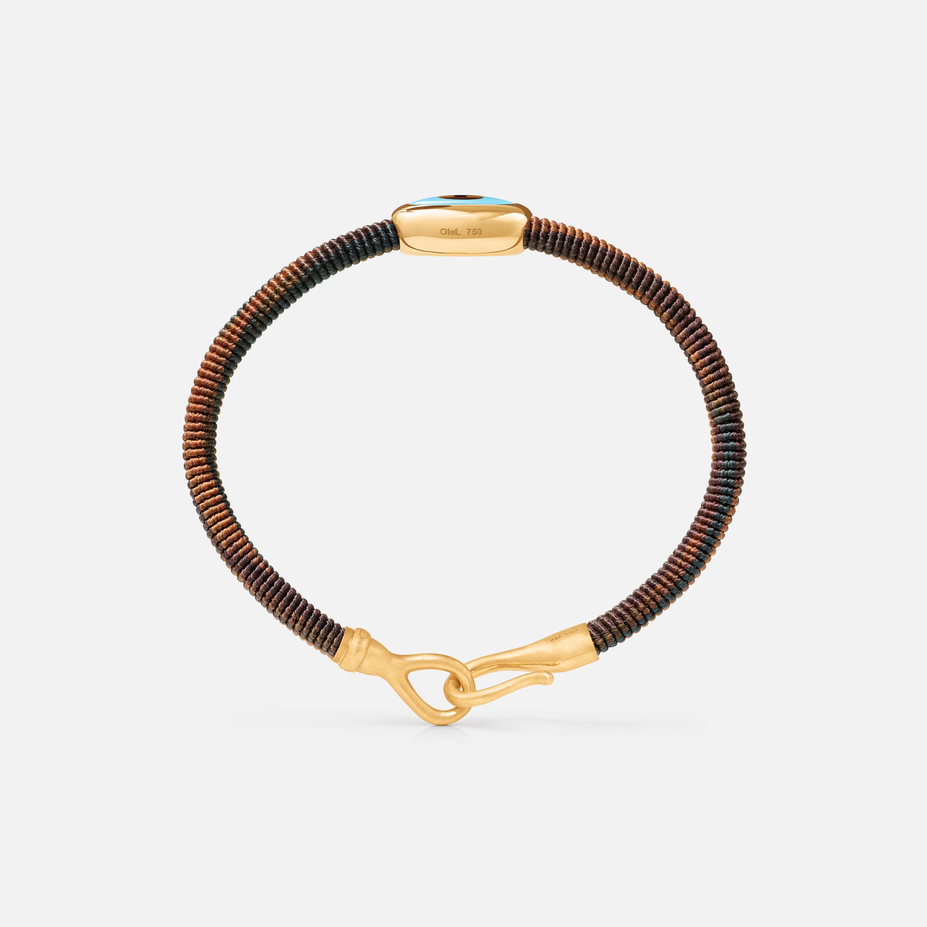 Designed by Charlotte Lynggaard, the Life Maroon bracelet with evil eye charm is hand-knotted using 11 strings, each one woven from 6 hand-dyed threads. The brand-stamped hook fastening is hand-crafted by master goldsmiths from 18 karat, brushed yellow gold. The 13x9x2,5 mm evil eye and is set in 18 karat, polished yellow gold. The bracelet measures 6 mm in width and is available in lengths of 15, 16, 17, 18, 19, 20, or 21 cm. Part of the Life Collection.