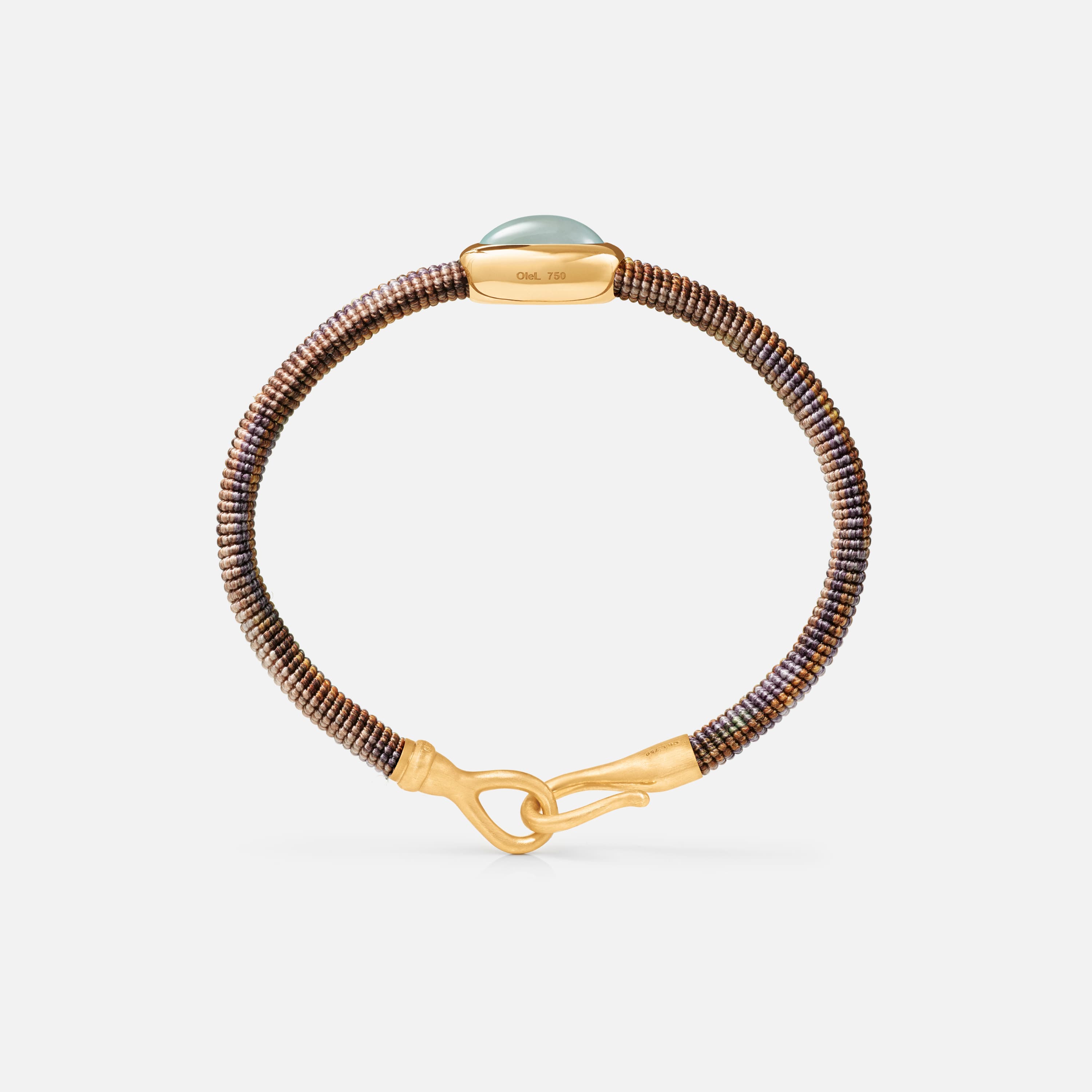 Designed by Charlotte Lynggaard, the Life Velvet bracelet with aquamarine charm is hand-knotted using 11 strings, each one woven from 6 hand-dyed threads. The brand-stamped hook fastening is hand-crafted by master goldsmiths from 18 karat, brushed yellow gold. The 13x9x4,75 mm aquamarine is set in 18 karat, polished yellow gold. The bracelet measures 6 mm in width and is available in lengths of 15, 16, 17, 18, 19, 20, or 21 cm. Part of the Life Collection.