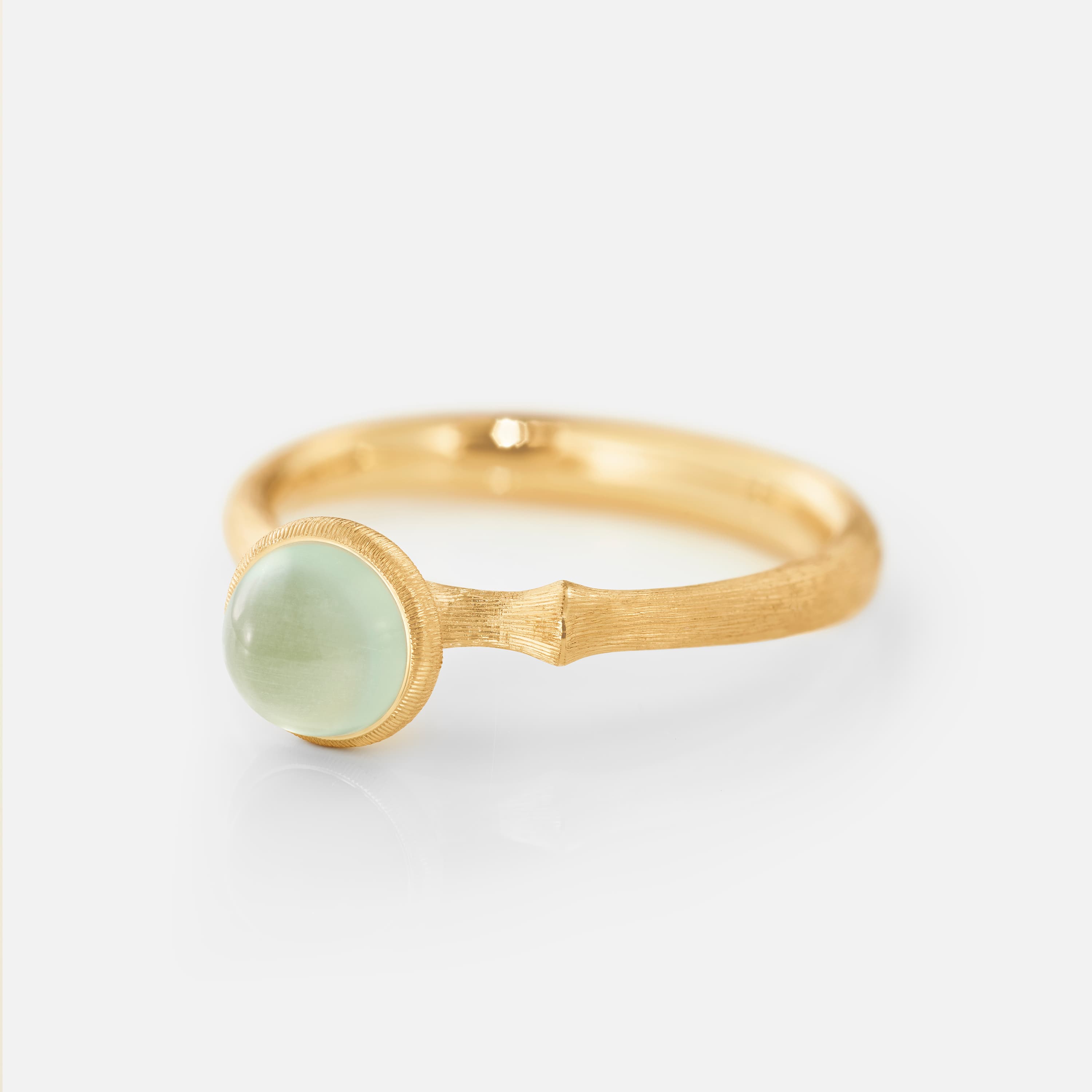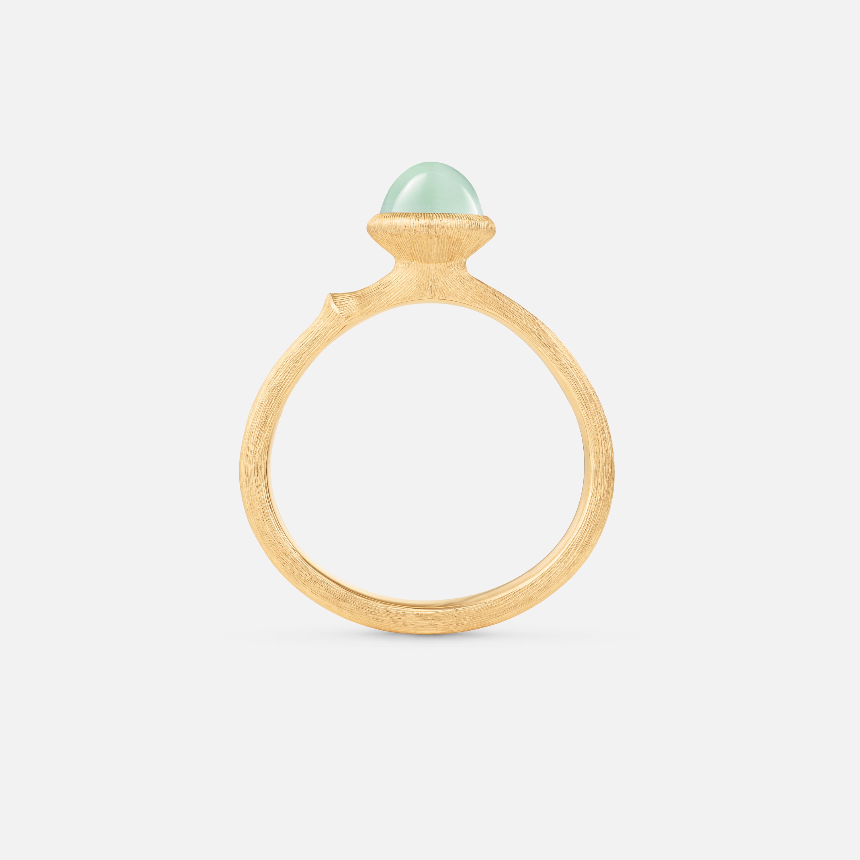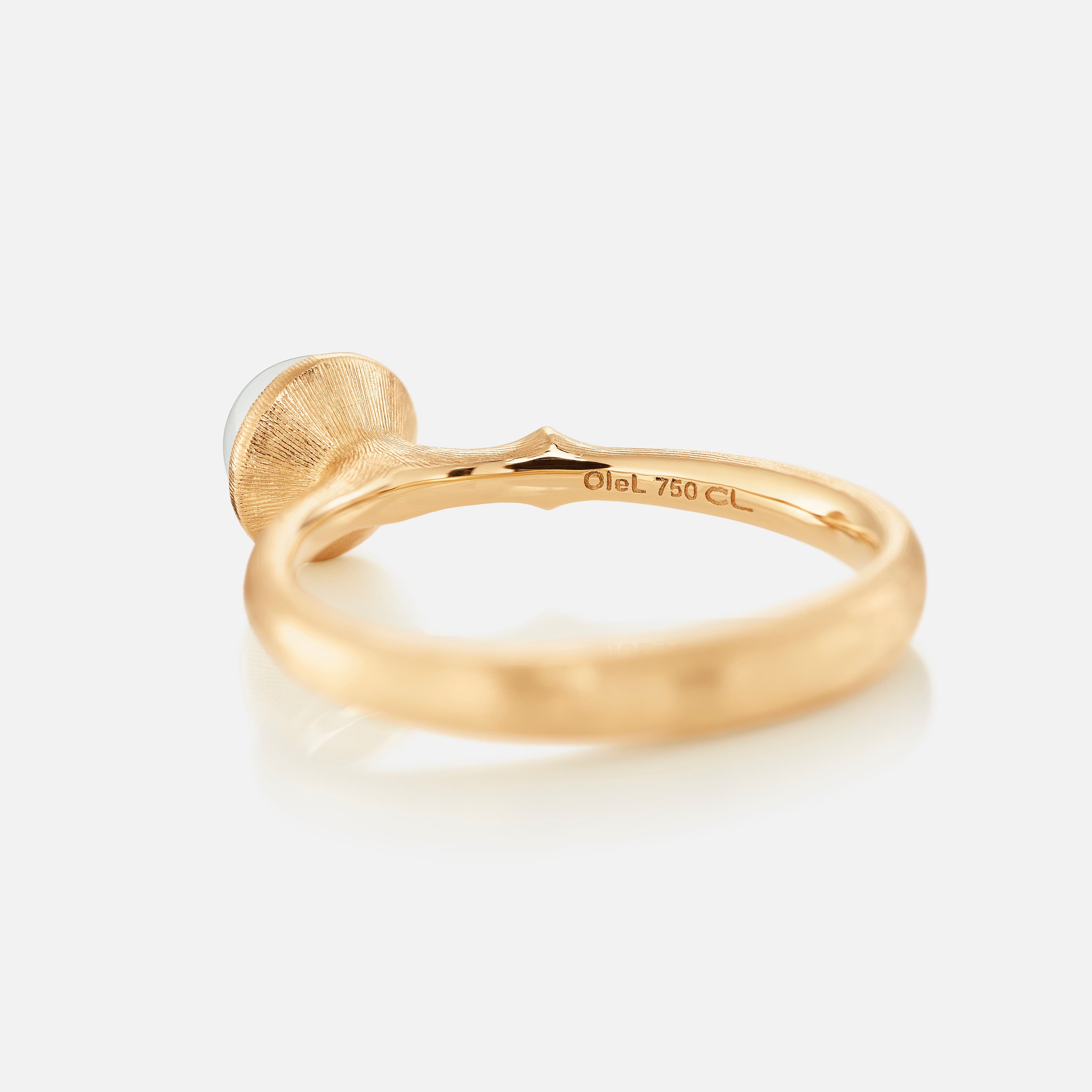 Designed by Charlotte Lynggaard, the Lotus ring, size 0, is crafted from 18 karat yellow gold and is set with an aquamarine cabochon. Handcrafted by master goldsmiths, the visible gold surface is hand-satinised, whilst the inside of the ring has a polished finish. Part of the Lotus Collection.