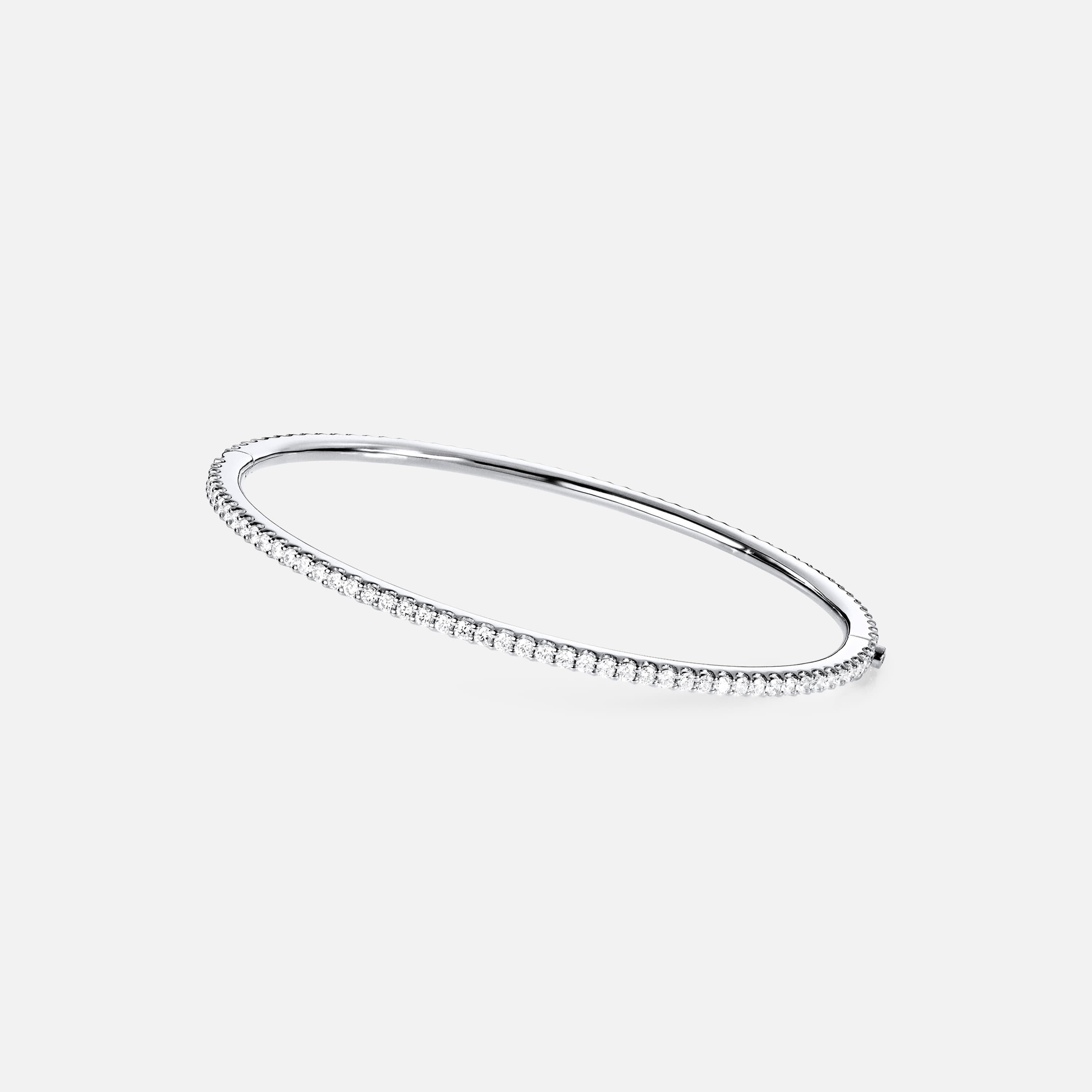 Designed by Charlotte Lynggaard, the Love Bands straight bangle is crafted from hand-polished, 18 karat white gold with 91-100 hand-set diamonds depending on bangle size, totalling 1.81-1.99 carat. TW. VS. The hand-forged hinge lock ensures a secure fastening. Handcrafted by master goldsmiths. Available in 15, 16, 17 or 18 cm. Part of the Love Bands Collection.