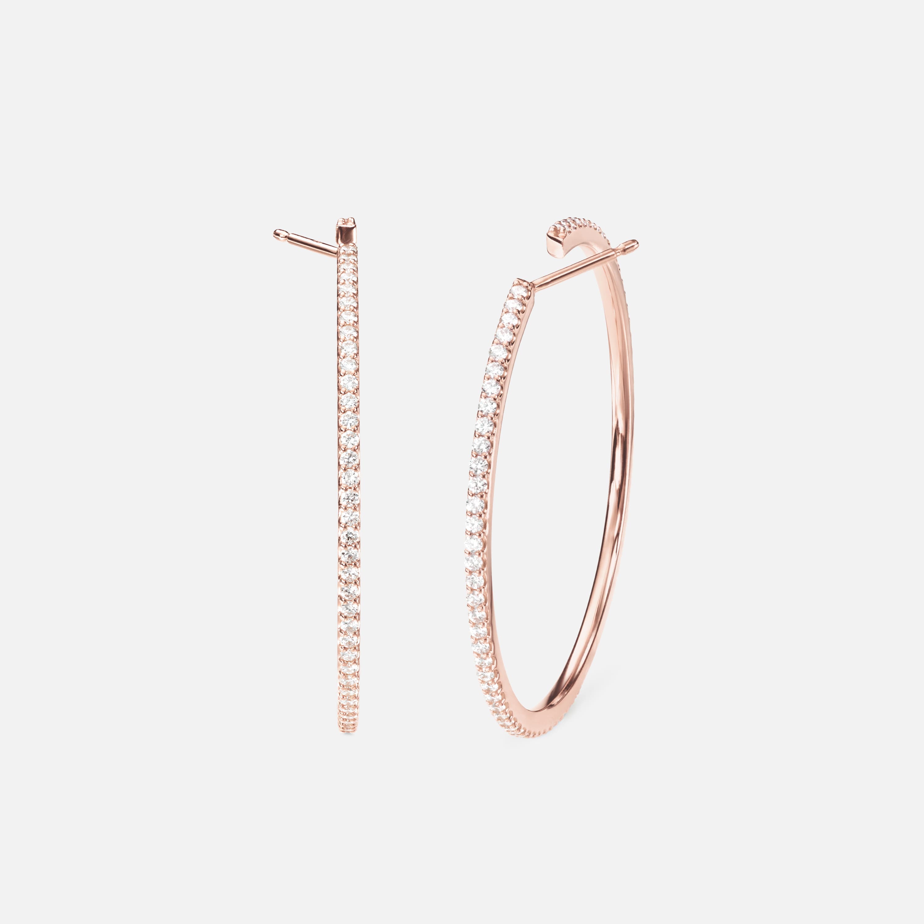 Designed by Charlotte Lynggaard, the Love Bands straight Creol earrings giga are crafted from 18 karat rose gold with 160 hand-set diamonds totalling 1.60 carat. TW. VS. The visible gold surfaces of the 38 mm diameter earrings are hand-polished by master goldsmiths. Sold as a pair. Part of the Love Bands Collection.