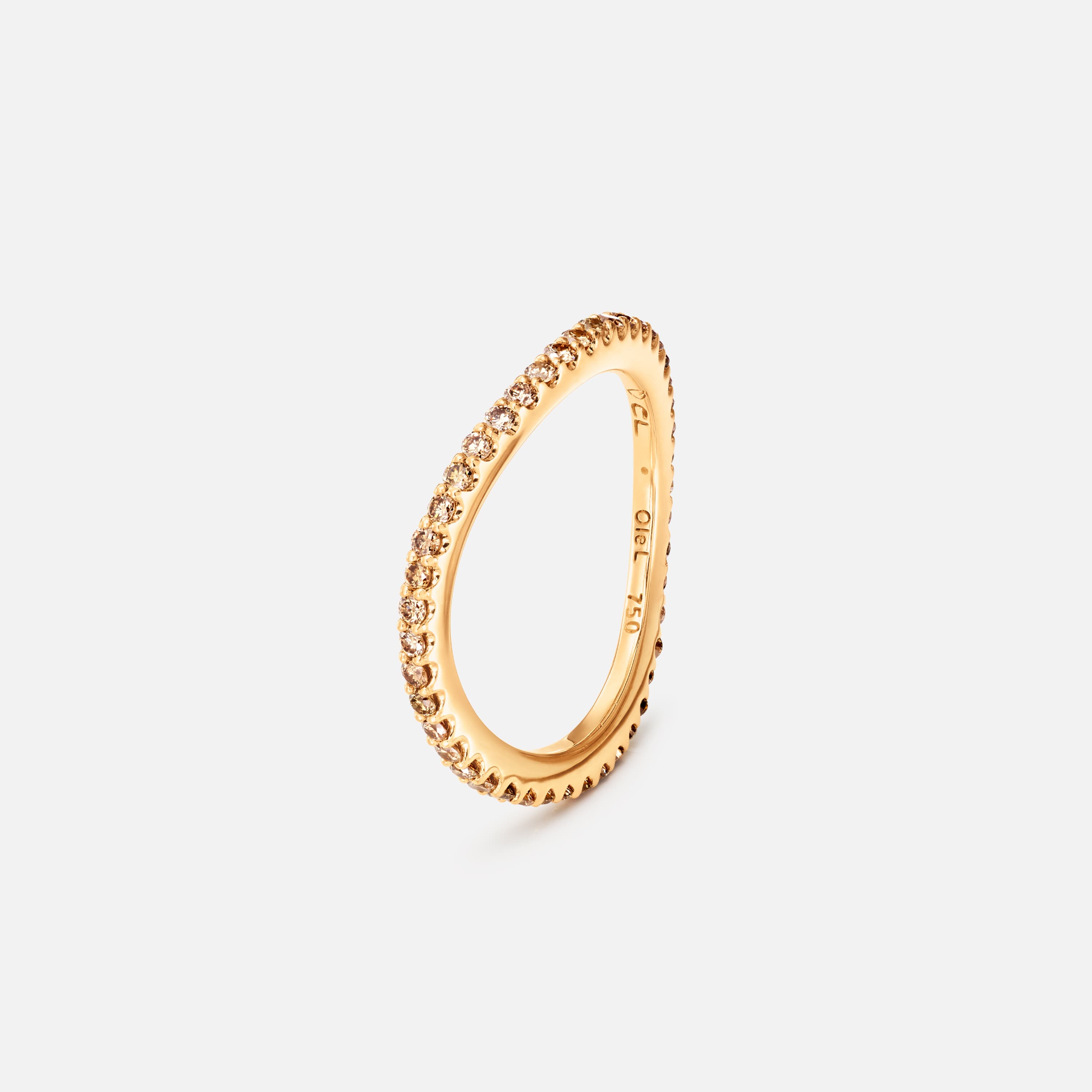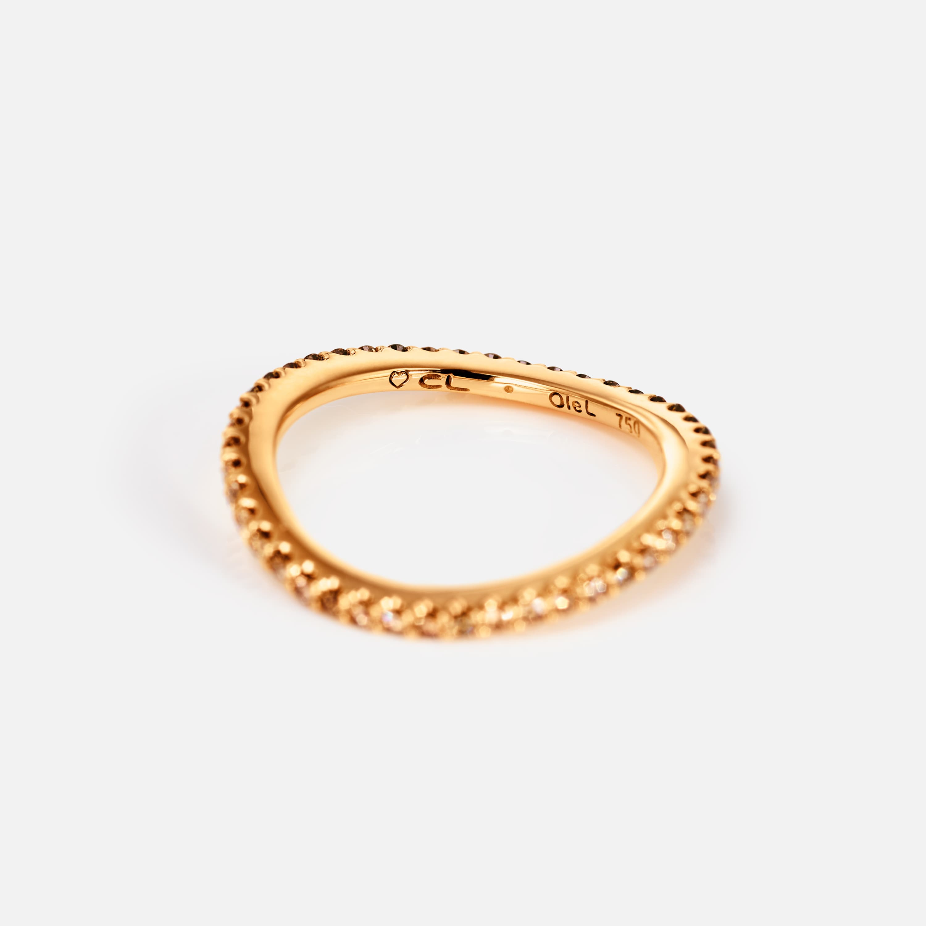 Designed by Charlotte Lynggaard, the Love Bands curved ring is crafted from 18 karat yellow gold with 40-47 chocolate brown diamonds, depending on ring size, totalling 0.40-0.47 carat TW. VS. The visible gold surfaces are hand-polished by master goldsmiths. Part of the Love Bands Collection.