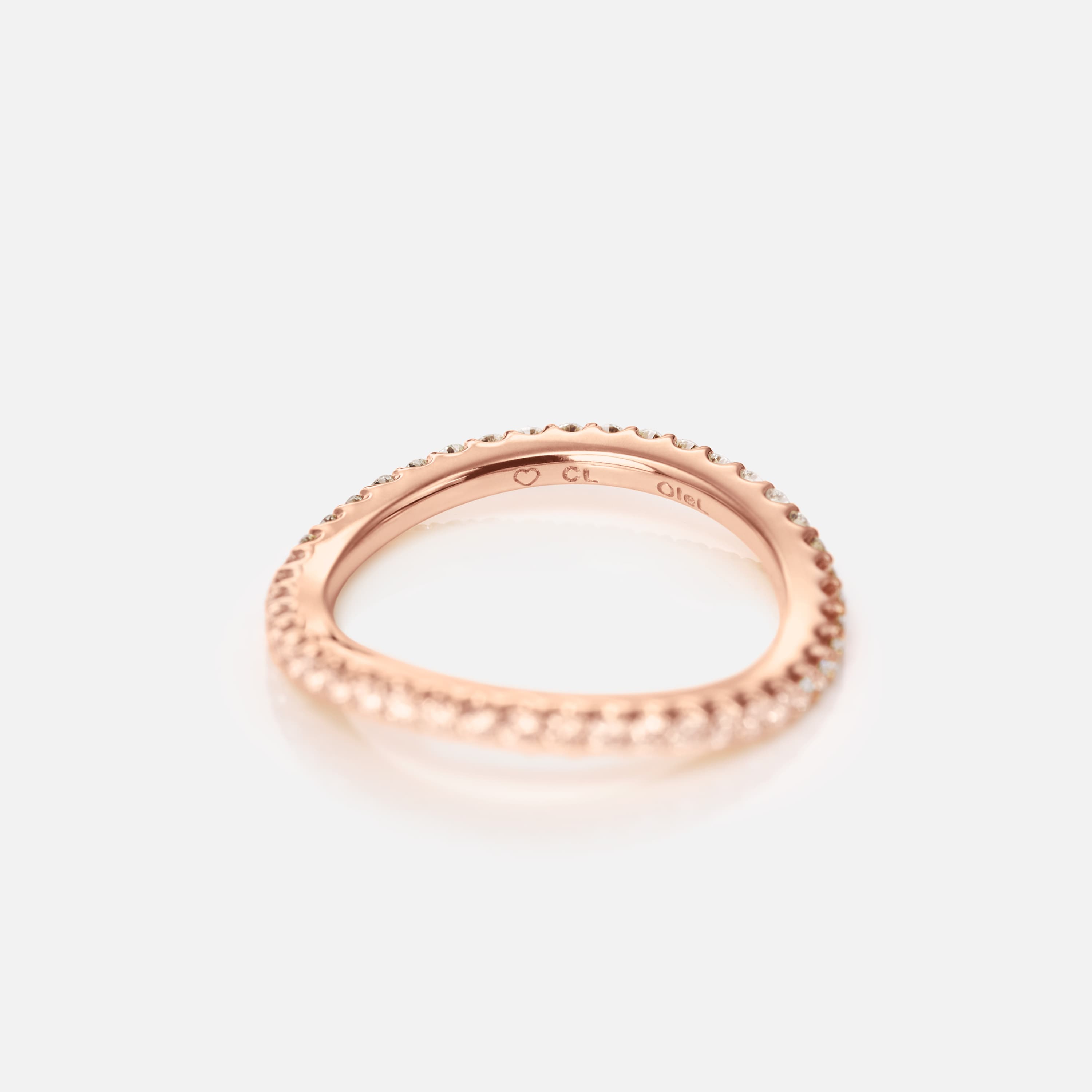 Designed by Charlotte Lynggaard, the Love Bands curved ring is crafted from 18 karat rose gold with 40-47 diamonds, depending on ring size, totalling 0.40-0.47 carat TW. VS. The visible gold surfaces are hand-polished by master goldsmiths. Part of the Love Bands Collection.