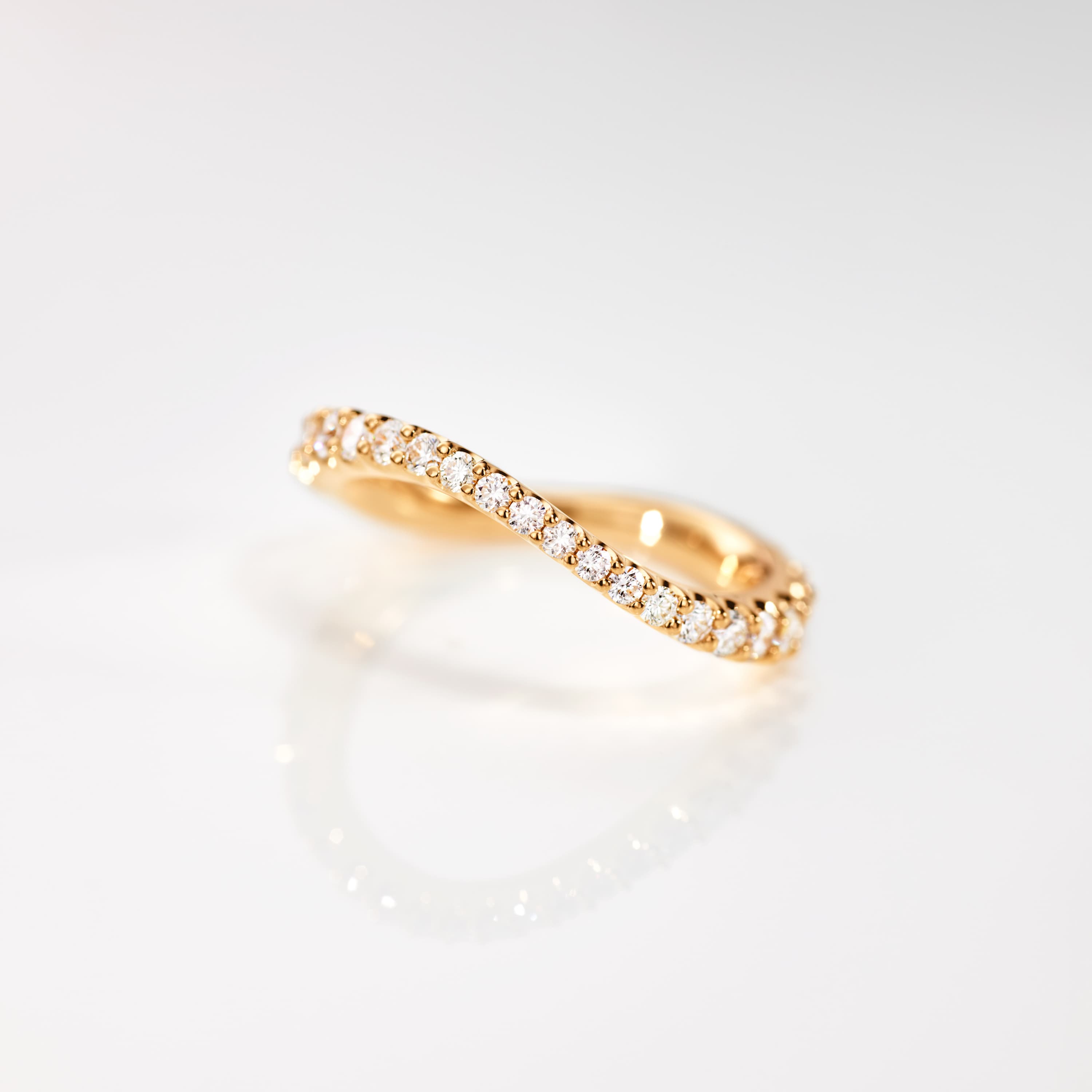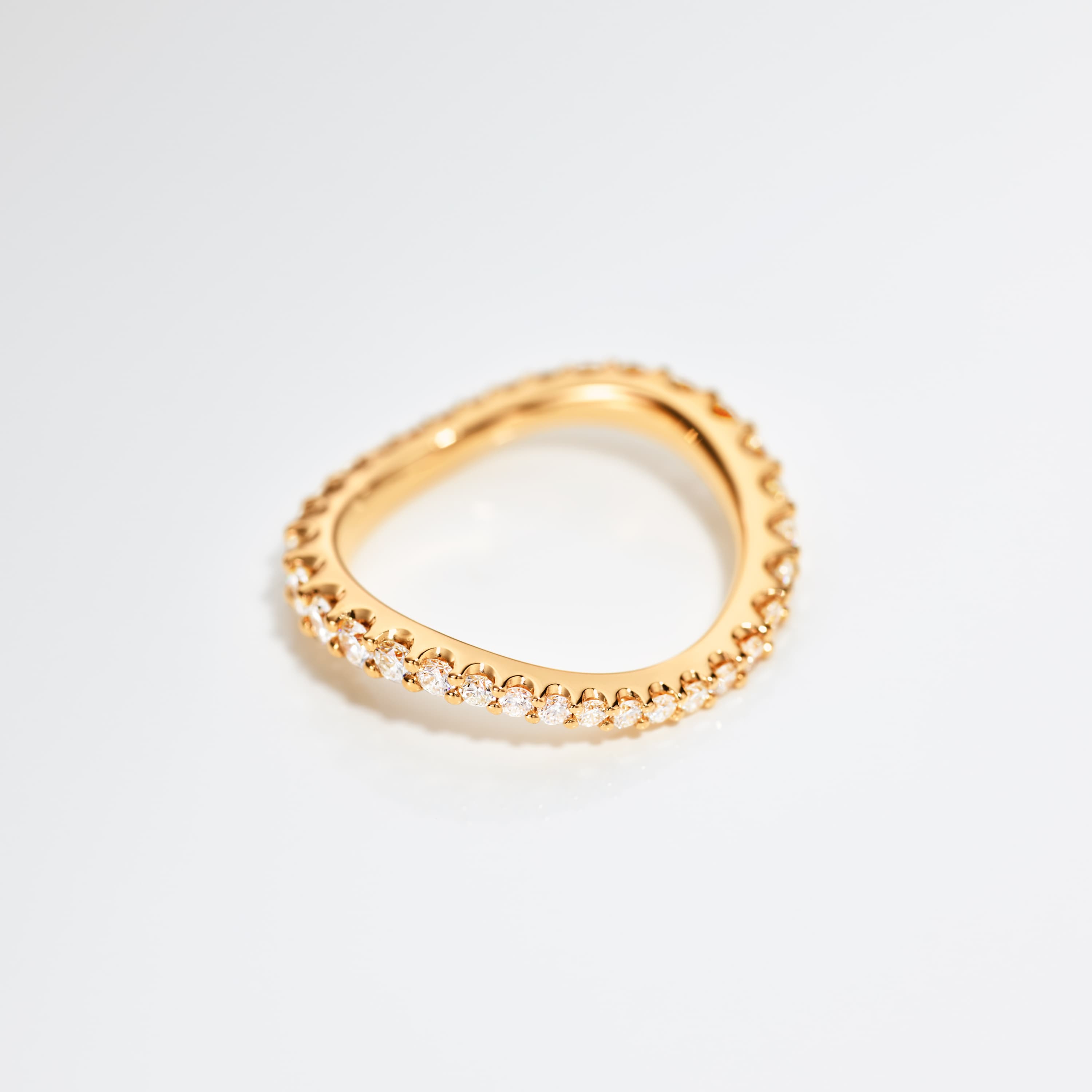 Designed by Charlotte Lynggaard, the Love Bands ring curved wide is crafted from 18 karat gold set with 33 diamonds totalling 0.90-1.00 ct. TW.VS depending on the ring size. The gold surfaces are hand polished by master goldsmiths. Part of The Love Bands Collection.