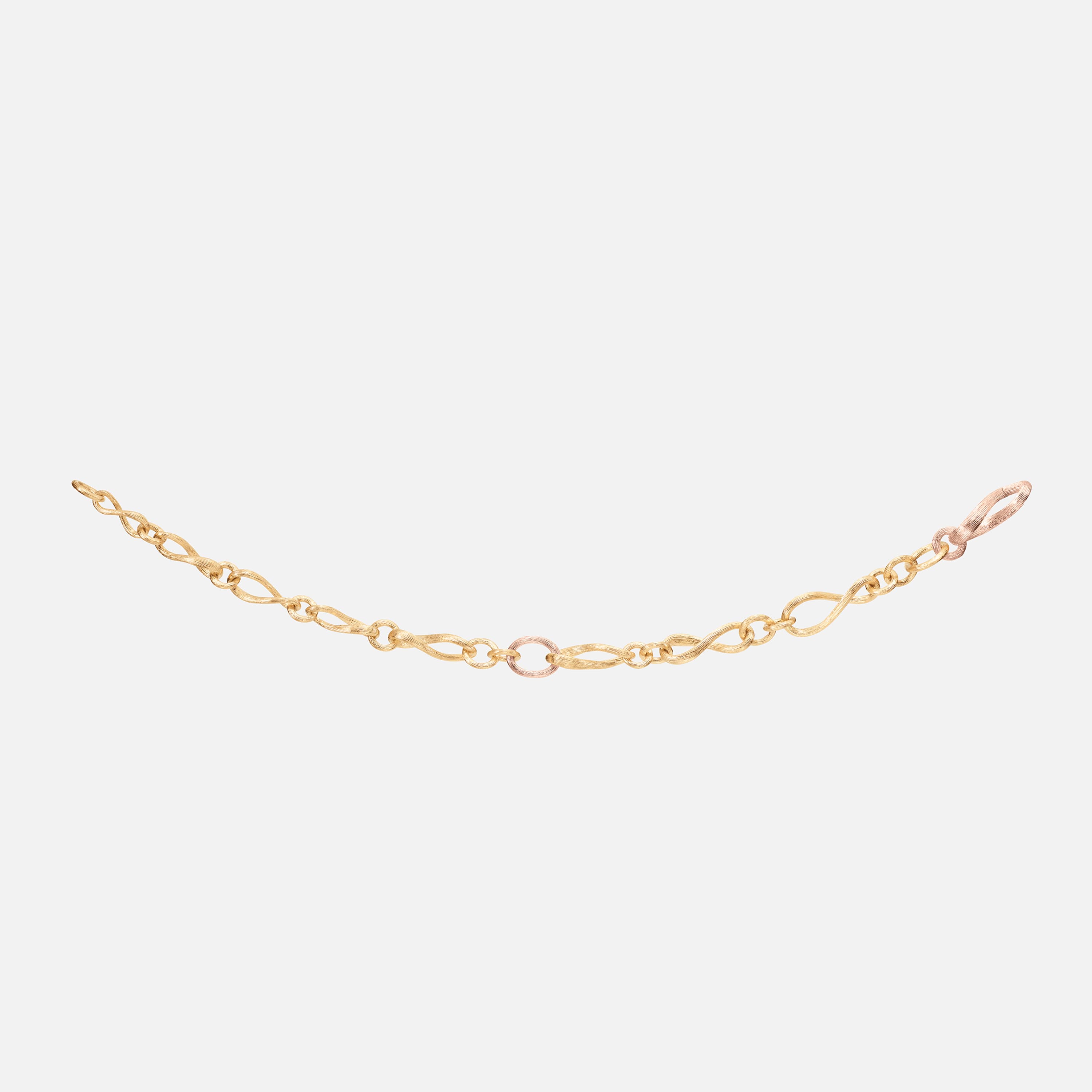 Designed by Charlotte Lynggaard, the Love bracelet mini is crafted from 18 karat yellow and rose gold. The total length is 20 cm, and the individual links are of varying sizes. Master goldsmiths hand-satinise the gold surfaces. Part of The Love Collection.