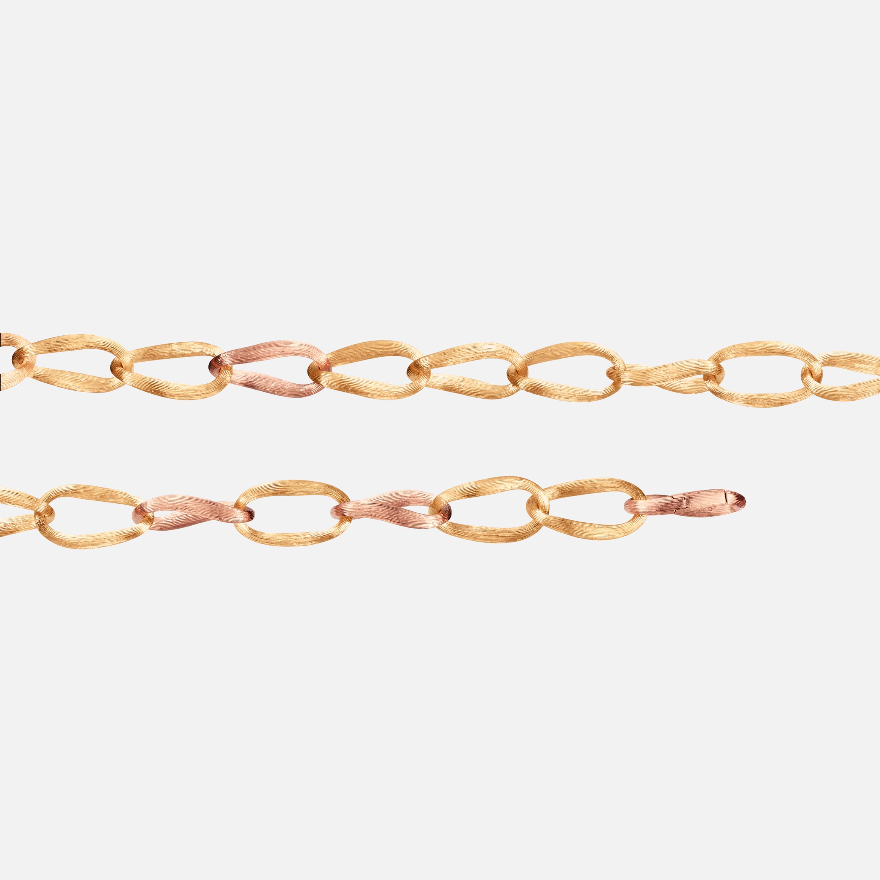 Designed by Charlotte Lynggaard, the Love collier medium is crafted from 18 karat yellow and rose gold. The total length is 42 cm, and the 27 individual links are of varying sizes. Master goldsmiths hand-satinise the gold surfaces. Part of the Love Collection.