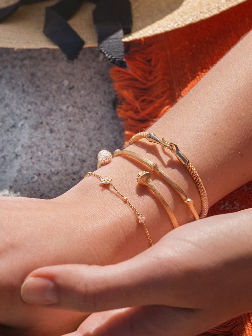 Designed by Charlotte Lynggaard, the Nature bangle is crafted from 18 karat yellow gold. The surface of the bangle is hand-satinised by master goldsmiths. Available as 14, 15, 16, 17 or 18 cm. Part of the Nature Collection.