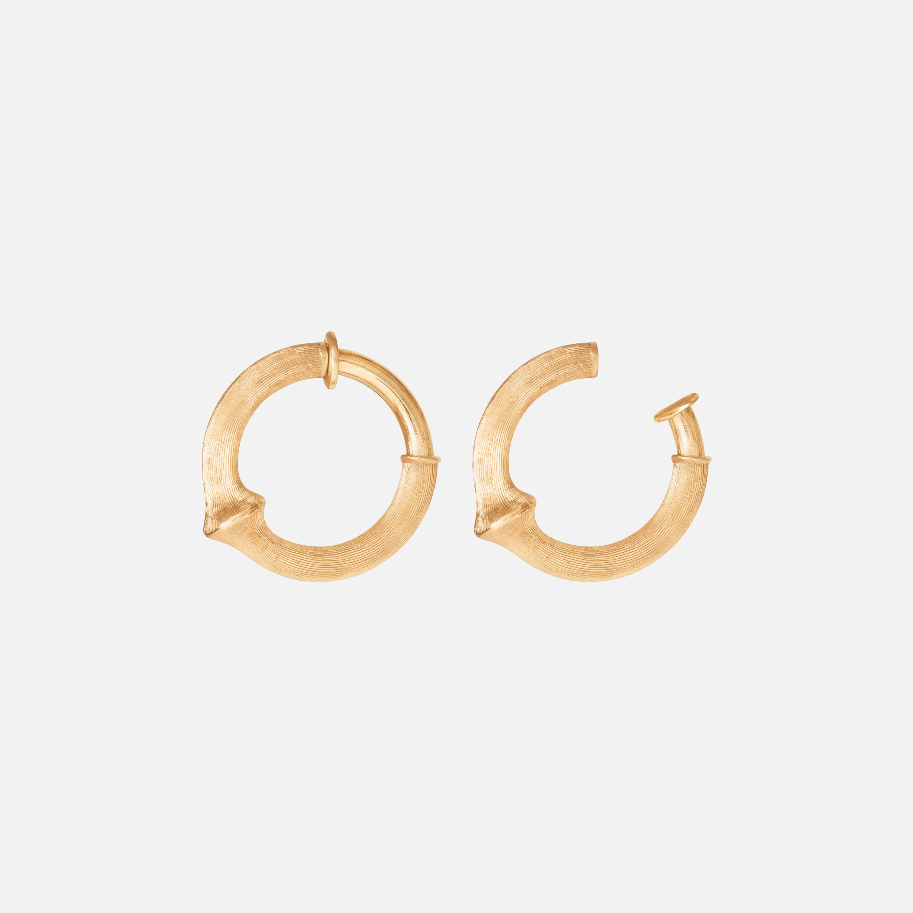 Designed by Charlotte Lynggaard, the Nature Creol clip earrings small are crafted from 18 karat yellow gold. The surfaces of the 21 mm diameter earrings are hand-satinised by master goldsmiths. Sold as a pair. Part of the Nature Collection.