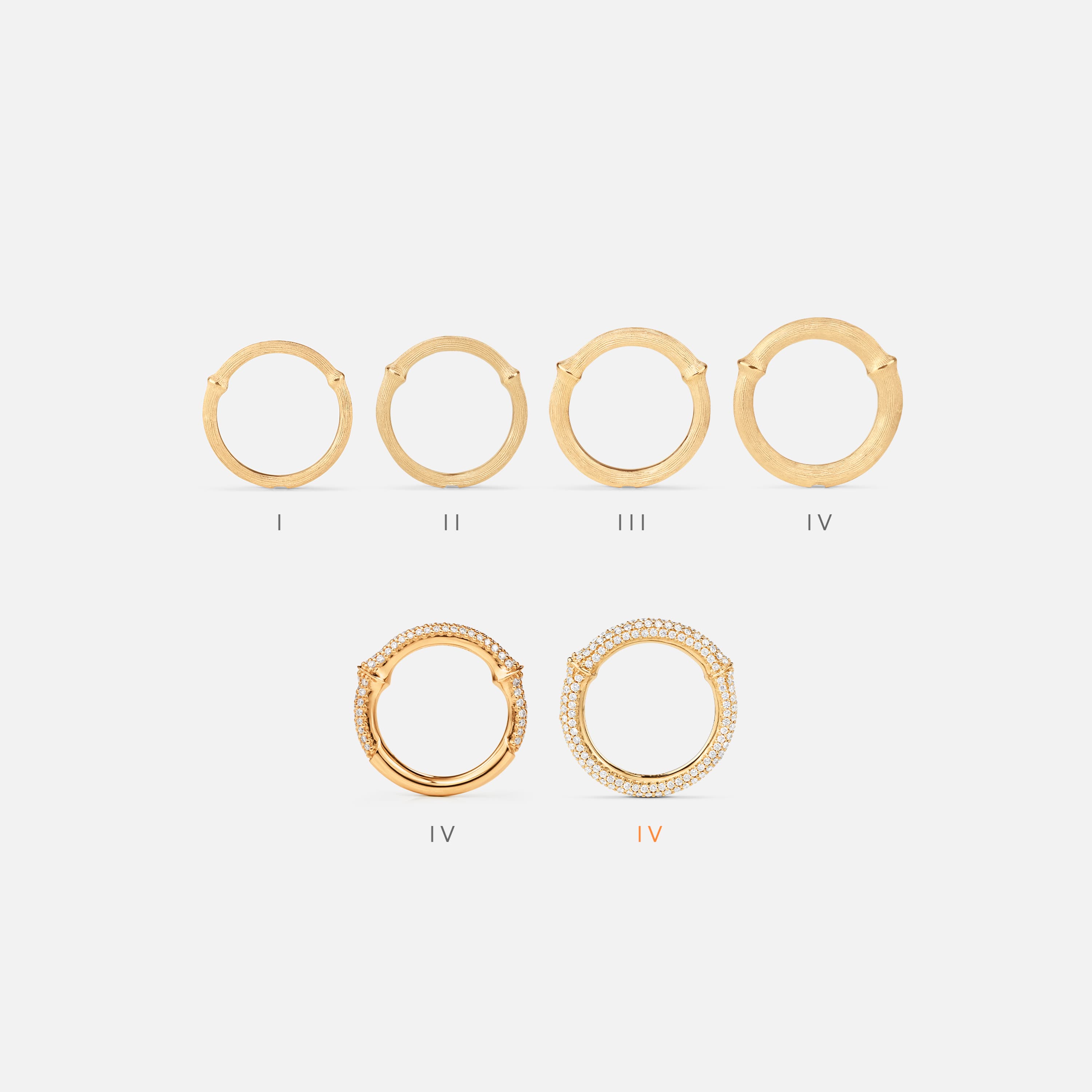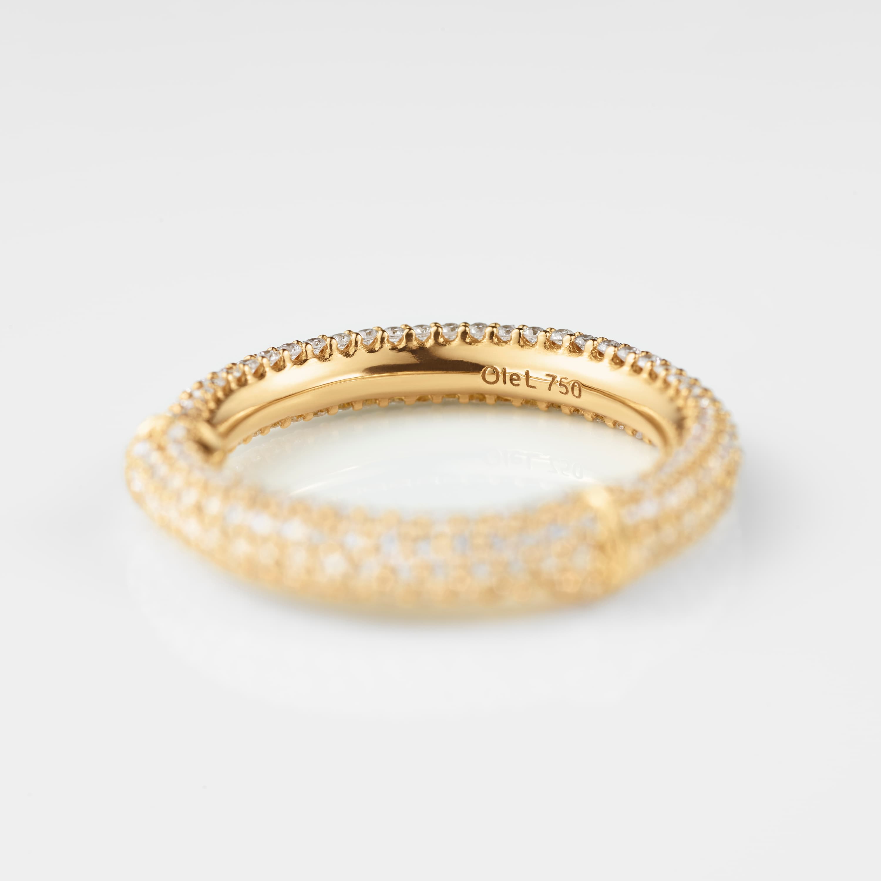 Designed by Charlotte Lynggaard, the Nature ring IV is crafted from 18 karat yellow gold, with hand-set pavé diamonds totalling 1,01-1,57 carat TW. VS., depending on ring size. The gold surface inside the ring is hand-polished by master goldsmiths for a smooth finish. Part of the Nature Collection.