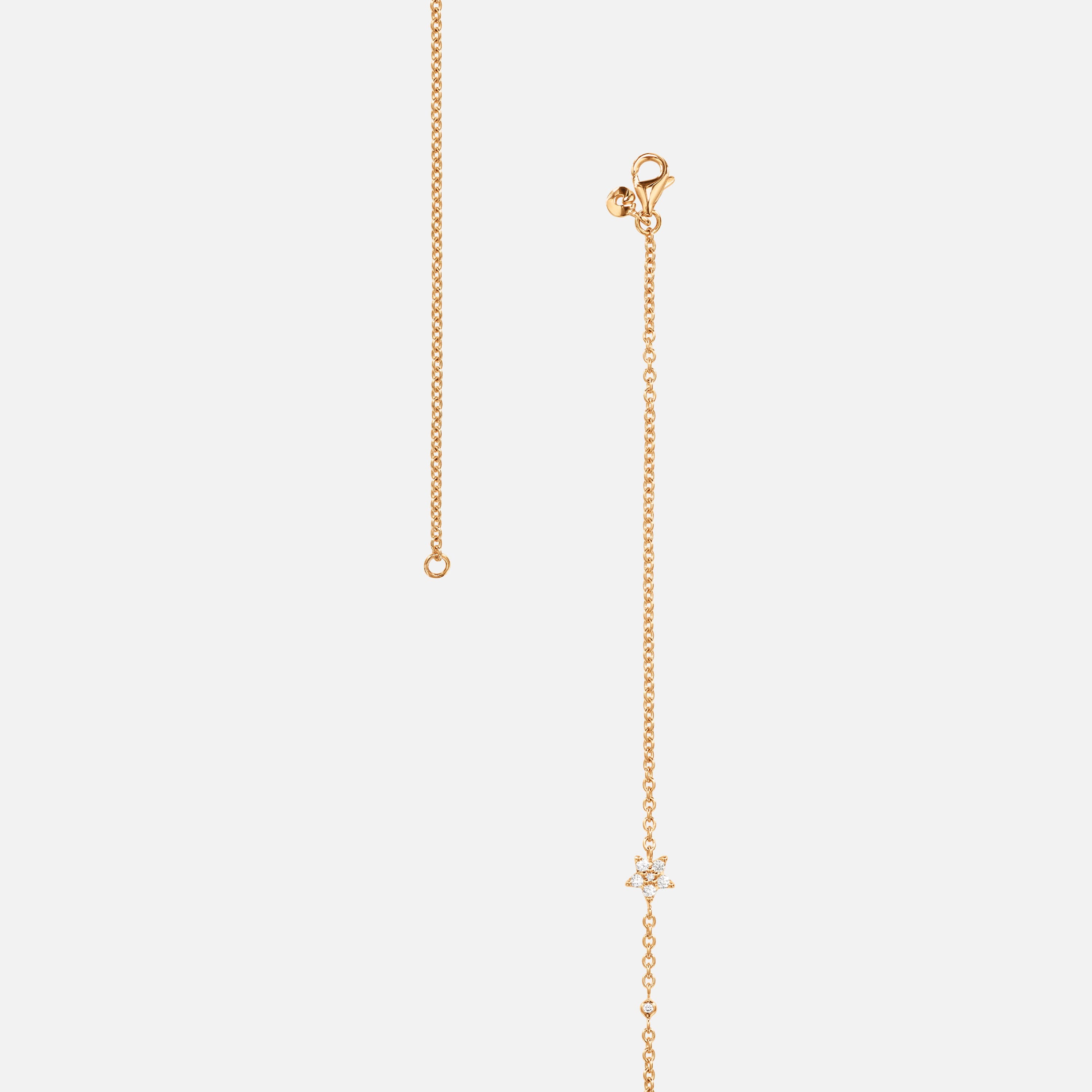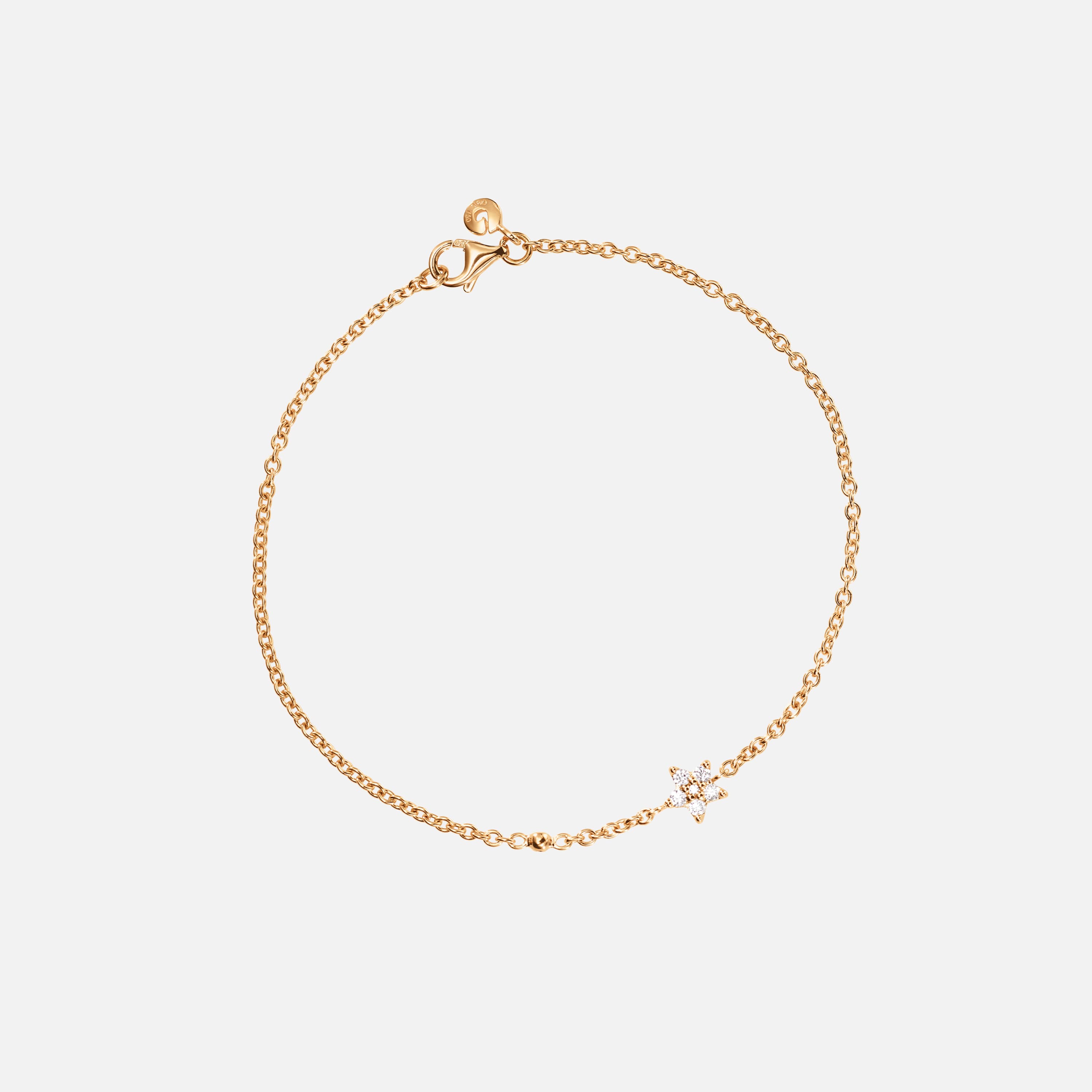 Designed by Charlotte Lynggaard, the Shooting Stars bracelet is available as 16, 17, 18, or 19 cm long and is crafted from 18 karat yellow gold and 7 diamonds totalling 0,11 carat TW. VS. The bracelet has one bezel-set diamond and one star, that has a slightly convex, hand-polished back and comprises 6 brilliant cut diamonds, raised from the surface to allow light through the facets. Handcrafted by master goldsmiths.