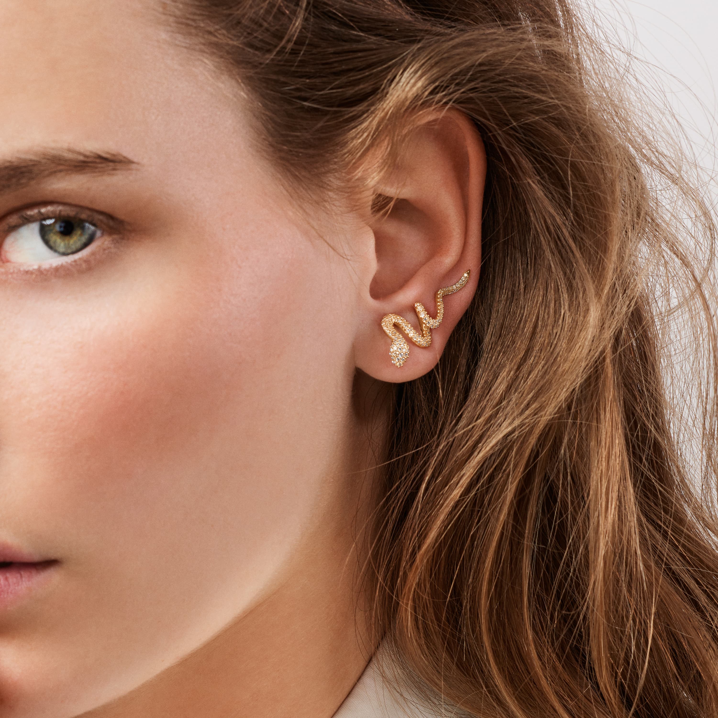 Designed by Ole Lynggaard, the Snakes pavé diamond ear climber is crafted from 18 karat yellow gold, with 151 pavé-set diamonds in different sizes following the shape of the ear climber, totalling 0.59 carat TW.VS. Handcrafted by master goldsmiths. Part of the Snakes Collection. Sold as a single piece.