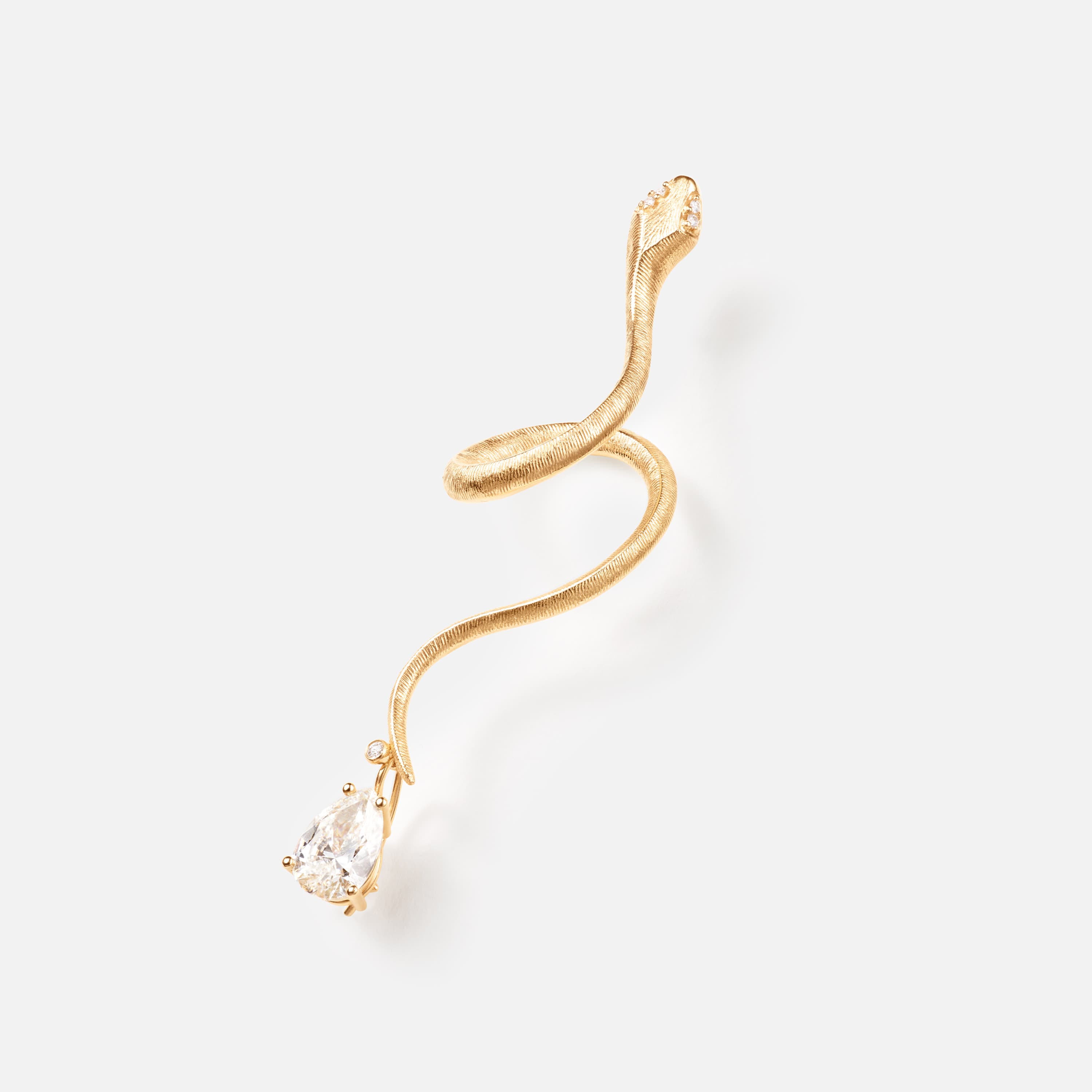 Designed by Ole Lynggaard, the Snakes earring is crafted from 18 karat yellow gold with 4 pavé-set diamonds and one bezel-set diamond totalling 0.026 carat TW. VS. Handcrafted by master goldsmiths. The visible gold surfaces are hand-satinised. Part of the Snakes Collection. Sold as a single piece.