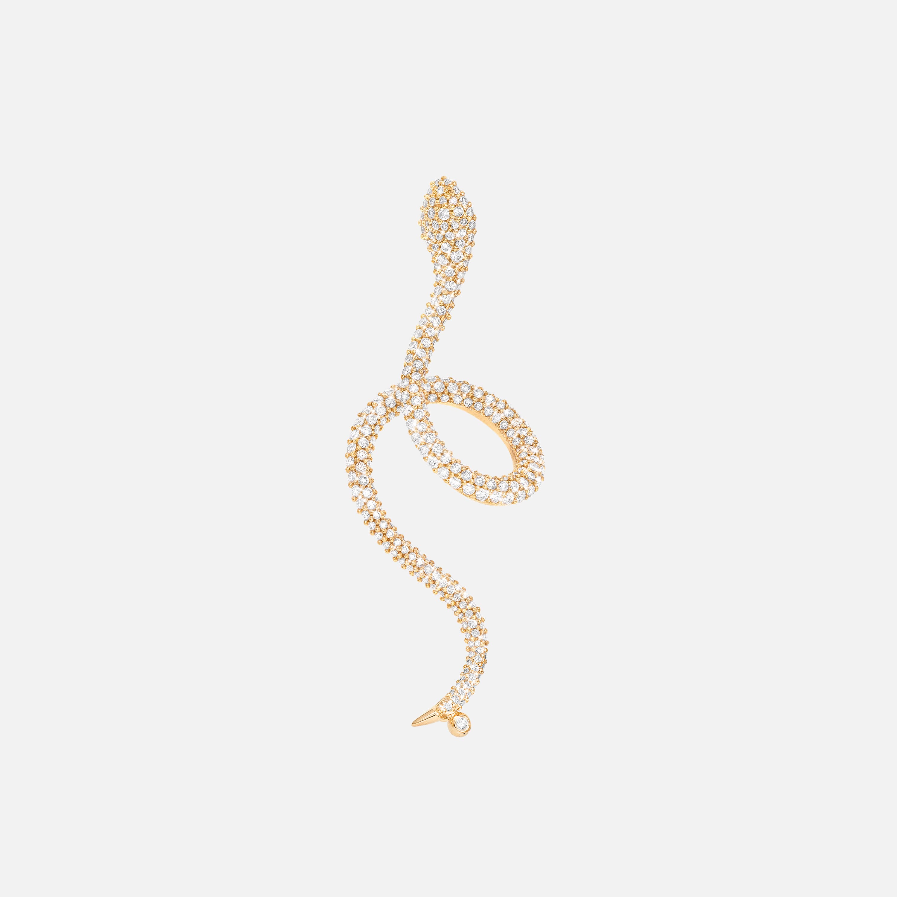 Designed by Ole Lynggaard, the Snakes pavé diamond earring is crafted from 18 karat yellow gold, with one bezel-set diamond and 255 pavé-set diamonds in different sizes following the shape of the earring, totalling 1.13 carat TW. VS. Handcrafted by master goldsmiths. Part of the Snakes Collection. Sold as a single piece.