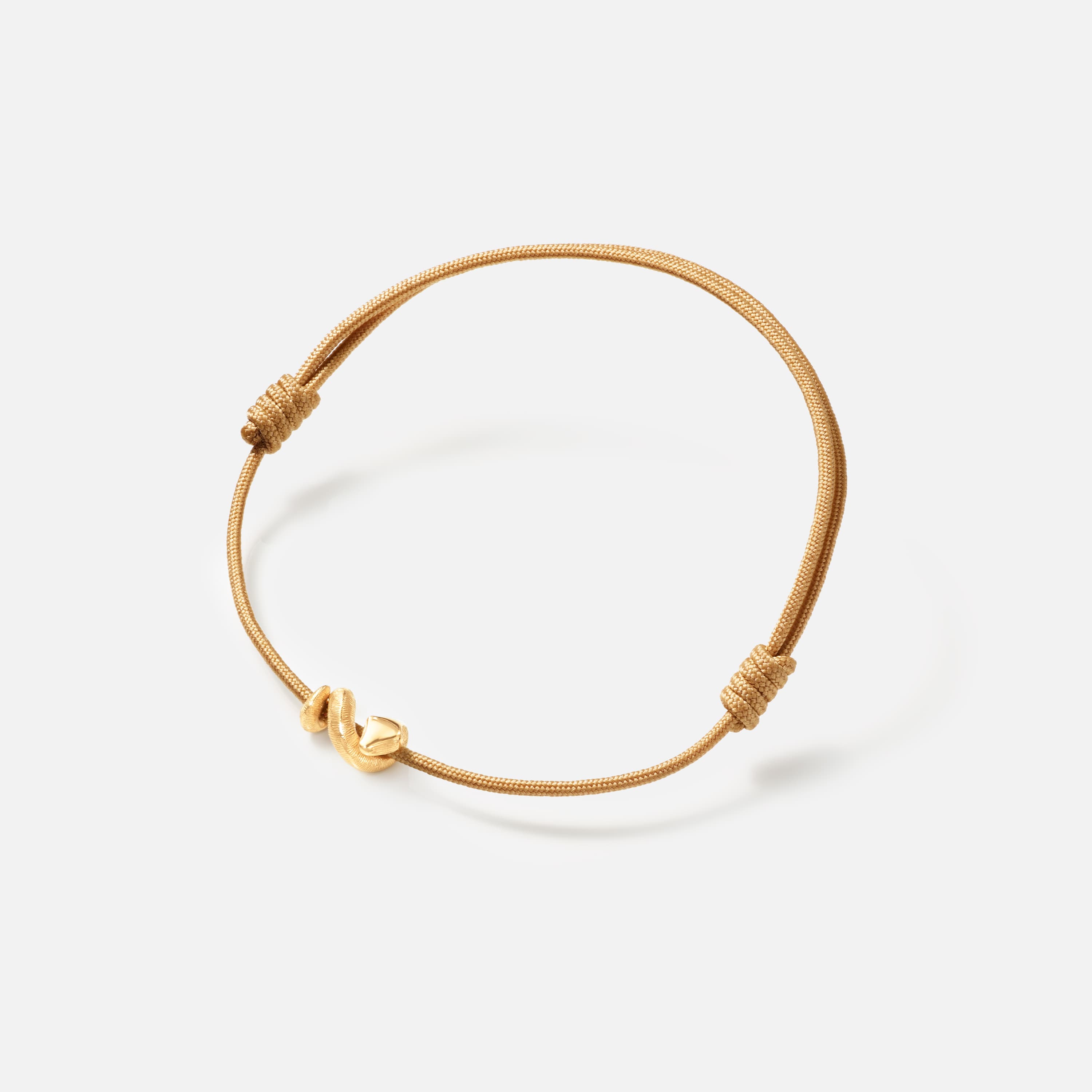 This Snakes bracelet features an 18 karat yellow gold snake charm, satinized by hand for a distinctive, textured finish. The charm is elegantly paired with a hand-knotted, beige cord, composed by four string. The bracelet is adjustable in circumferenace, making it easy to take on and off. Designed by Ole and Charlotte Lynggaard. Part of The Snakes Collection.