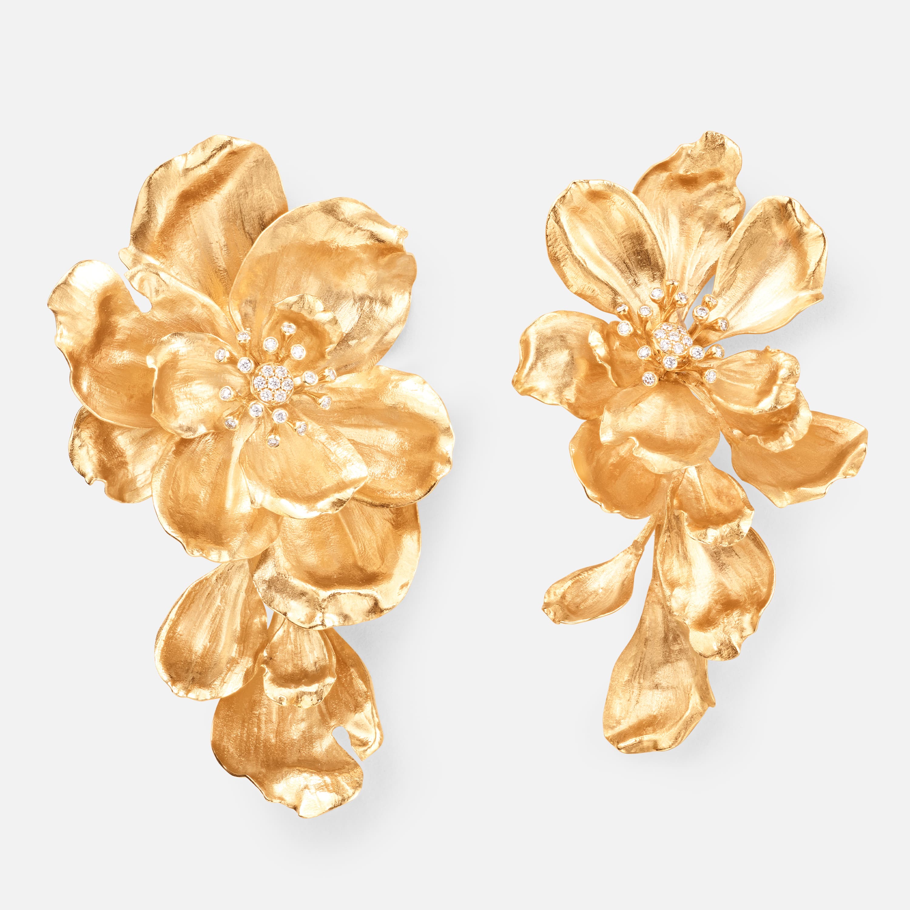 Designed by Charlotte Lynggaard, this Wild Rose earclip is crafted from 18 karat yellow gold and set with 22 diamonds totalling 0.18 ct. TW VS. Master goldsmiths carve and hammer the gold surfaces by hand, and polish the ridges to create contrast. Available in left and right. Sold as a single piece. Part of The Wild Rose Collection.