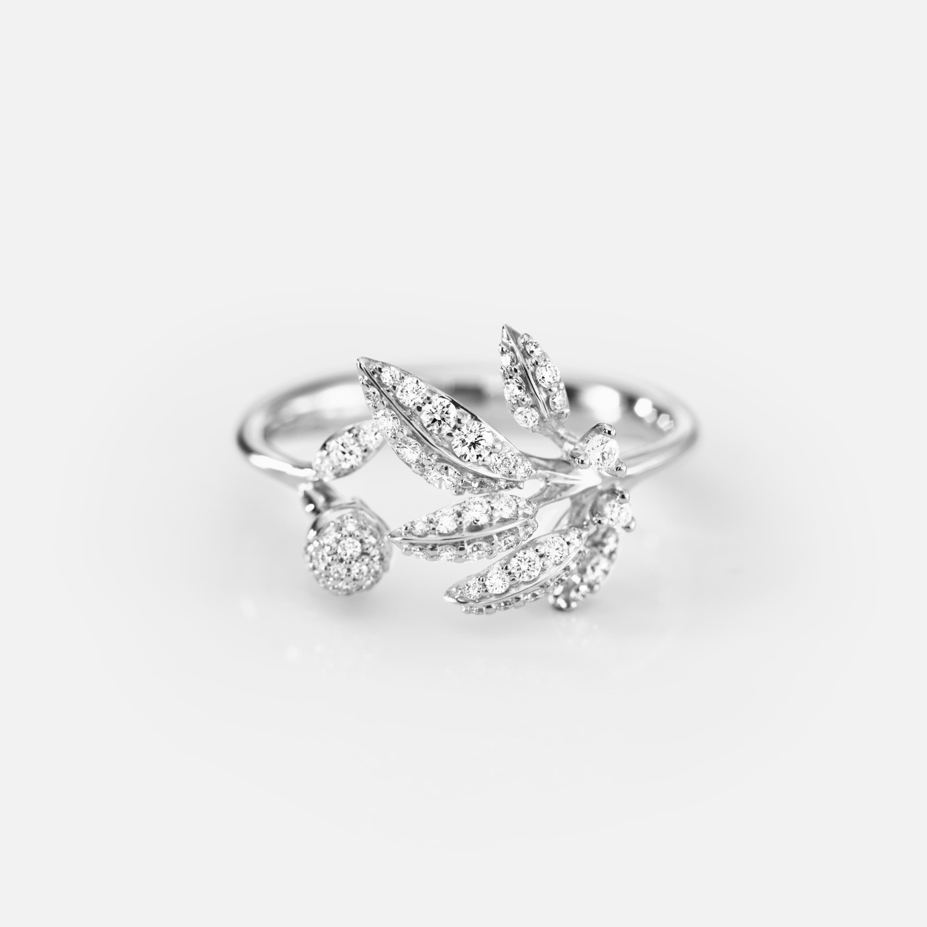Designed by Charlotte Lynggaard, the Winter Frost ring small is crafted from 18 karat white gold and set with 66 diamonds totalling 0,35 carat TW. VS. The diamonds, which are of varying sizes, are hand-set by master goldsmiths to follow the shape of the leaves. Part of the Winter Frost Collection.