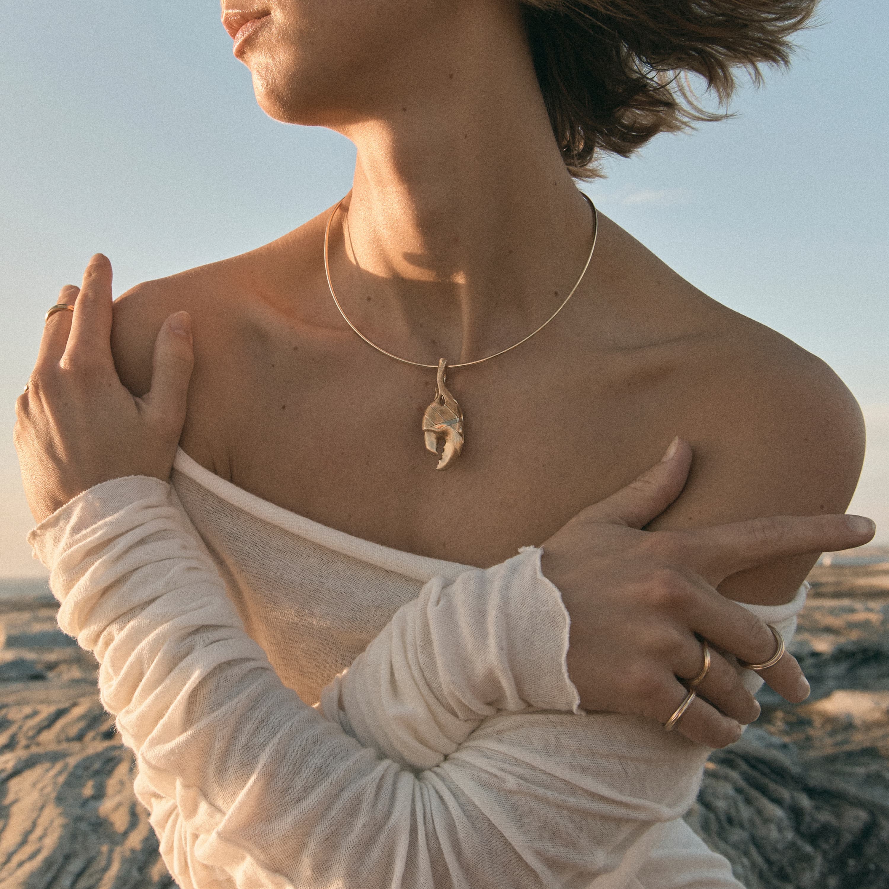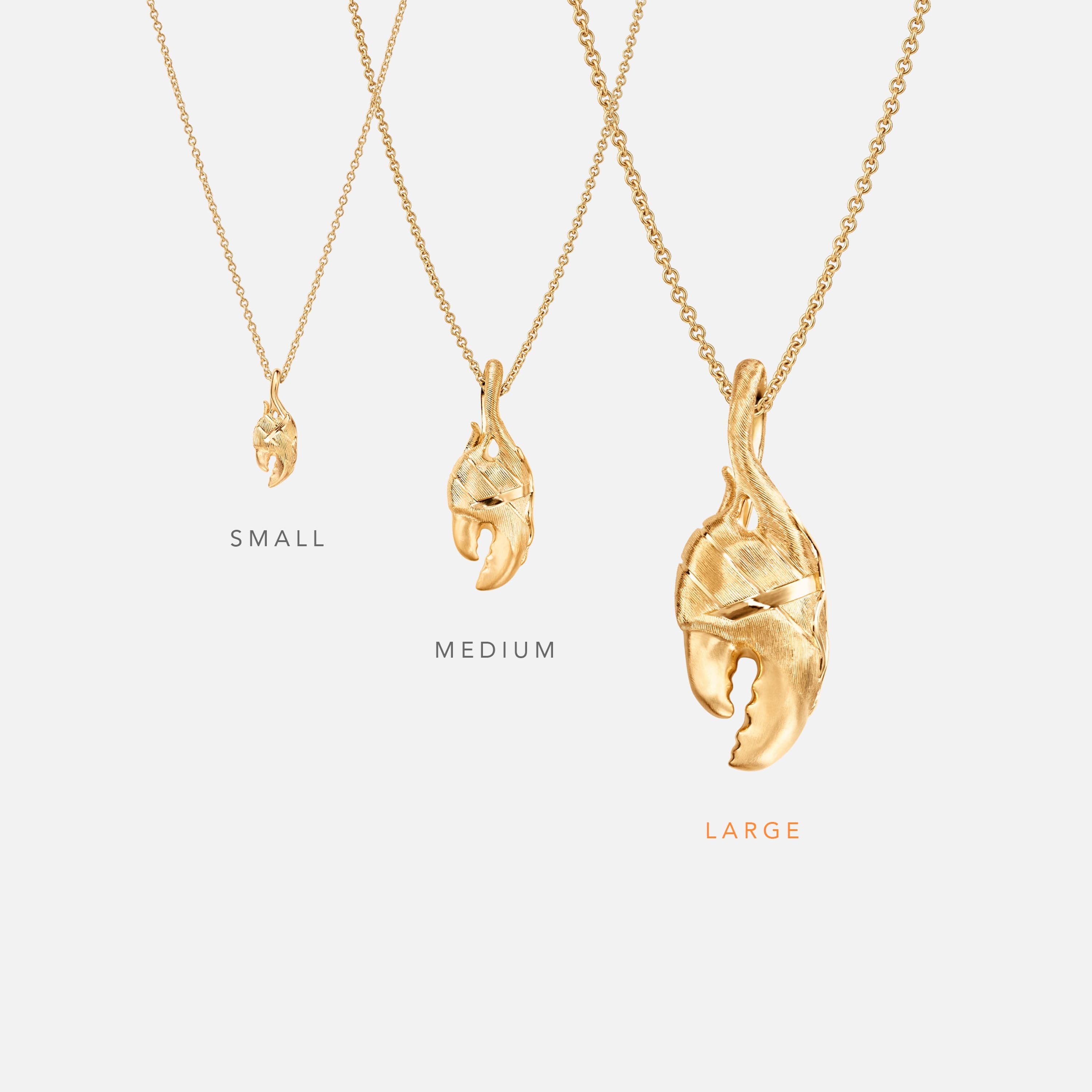 Designed by Sofia Lynggaard Normann. This large Claw pendant is crafted from 18 karat yellow gold. The claw has a detailed texture, composed by an advanced pattern of satinized, polished, sandblasted, and brushed surfaces, handcrafted by master goldsmiths. The length of the pendant is 5.5 cm. Part of The Young Fish Collection.